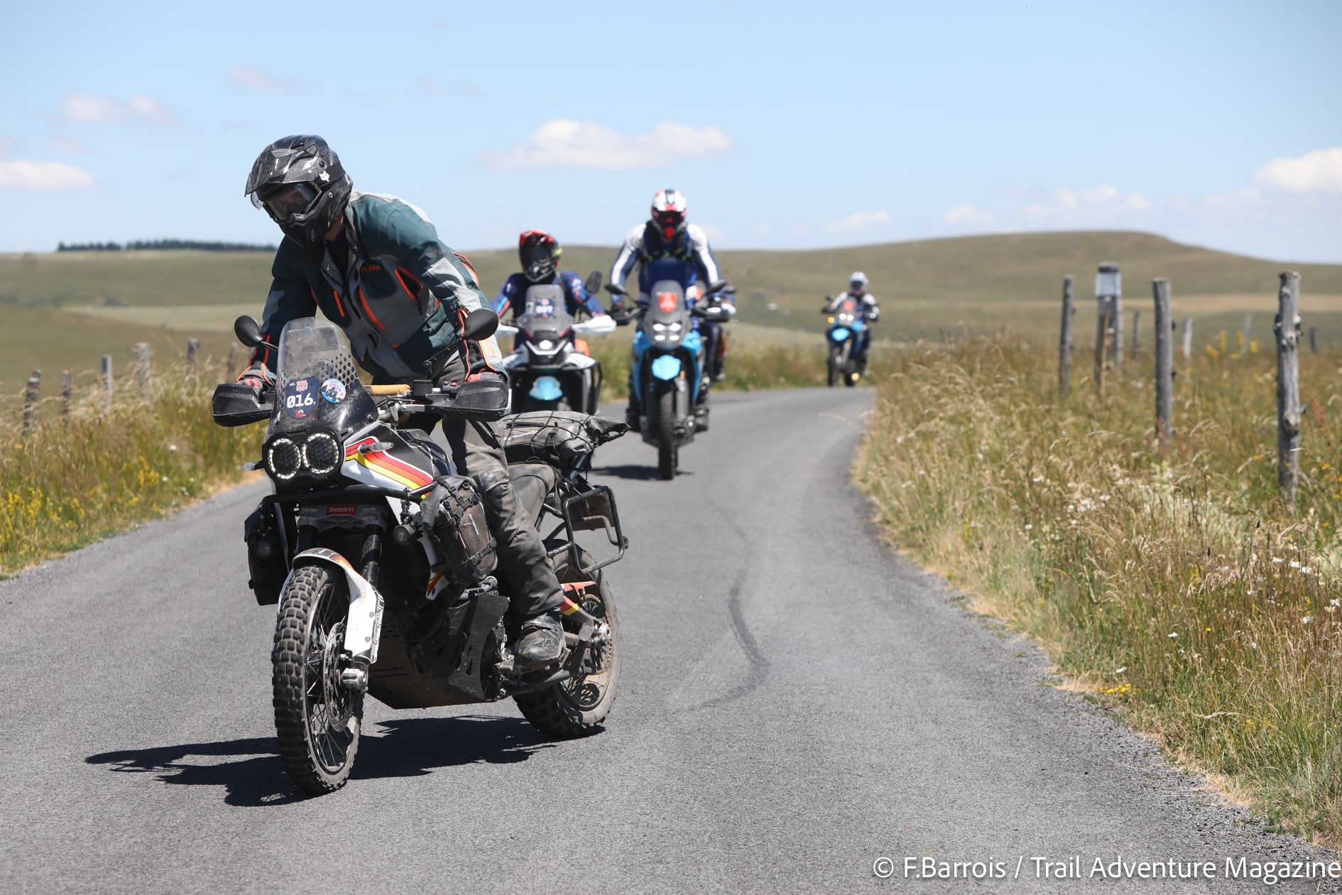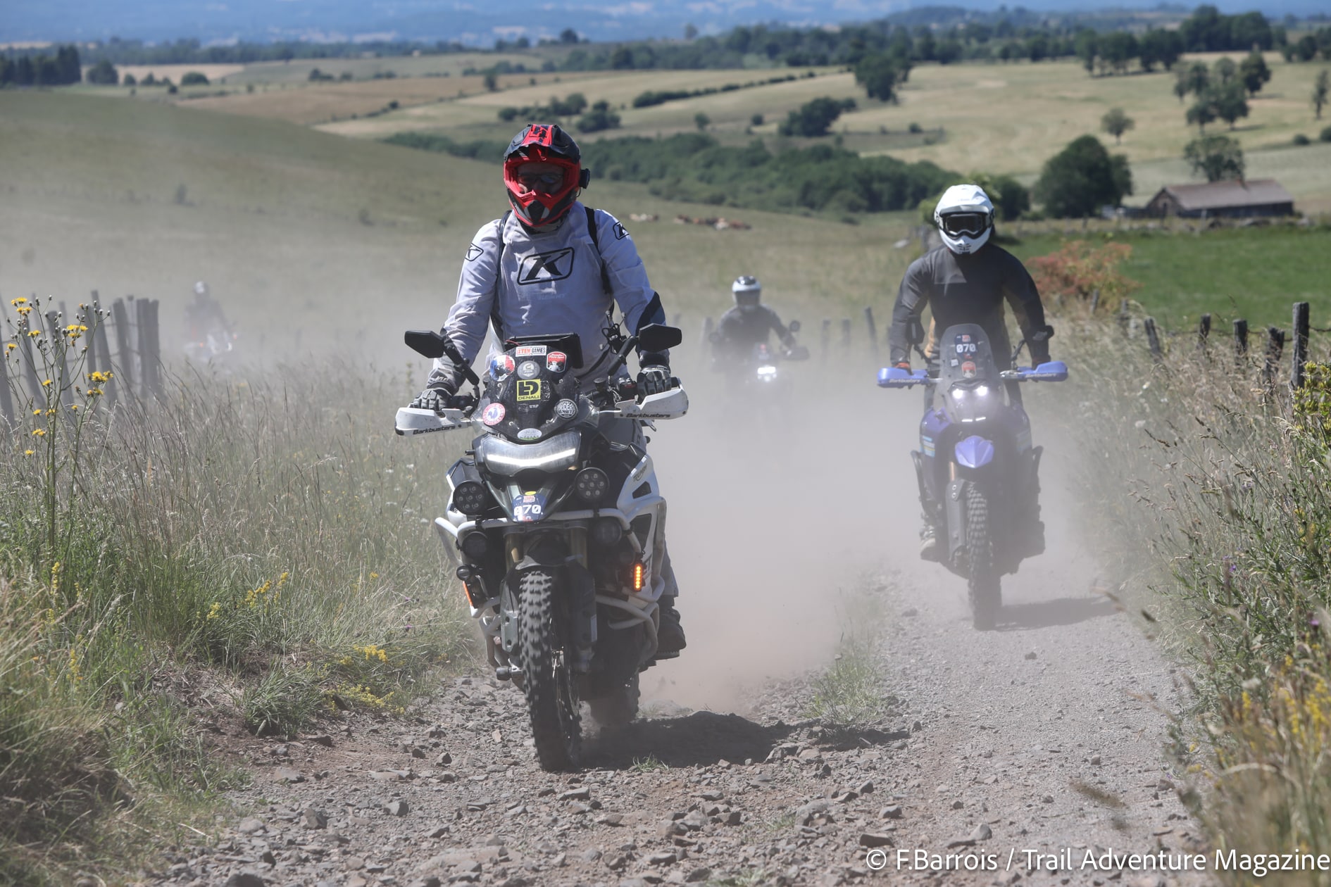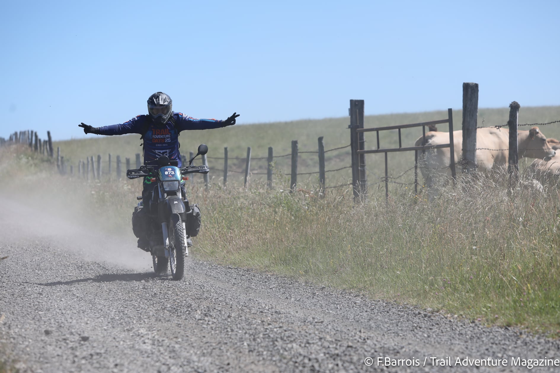 Le lendemain, pour l’ouverture des festivités, tous nos participants ont donc pu profiter pleinement de cette 10e édition. Sous un soleil radieux, les essais motos de constructeurs n’ont pas désempli une seconde, le village d’exposants a lui aussi connu un gros succès, sans parler de la tombola où il y avait plus de 10 000 euros de cadeaux à se partager ! Mais on venait aussi et surtout aux TA Days pour rouler et là encore, le bonheur se lisait sur le visage de tous les participants sans exception. Il faut dire qu’on les avait particulièrement gâté avec, comme toujours 4 niveaux de traces (du 100% route au tout-terrain engagé), pour partir à l’assaut d’une région juste magnifique. L’équipe avait tracé des parcours inédits et sublimes, au cœur des monts d’Auvergne avec vues spectaculaires sur le massif du Sancy, les sublimes prairies du Cézallier, les orgues de Bort ou encore les immensités désertiques des plateaux d’estives. Tout le monde en a littéralement pris plein les yeux. Même les pilotes locaux ont redécouvert leur région, c’est dire !