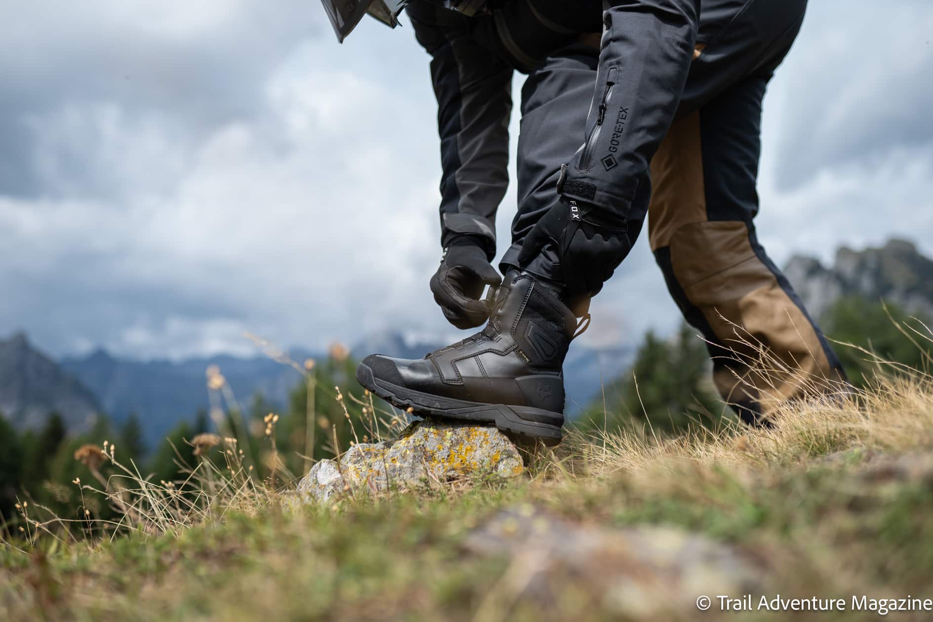 Le trail, c’est aussi l’envie de s’arrêter dans des coins reculés et d’en profiter à pied. Plusieurs marques l’ont compris et proposent des bottines orientées « marche », avec semelle crantée et bon confort de marche. Une excellente option pour rouler en sécurité sans se fatiguer les pieds une fois descendu de moto… à condition de ne pas leur demander la même protection qu’une vraie botte off-road. Prudence sur les chemins !