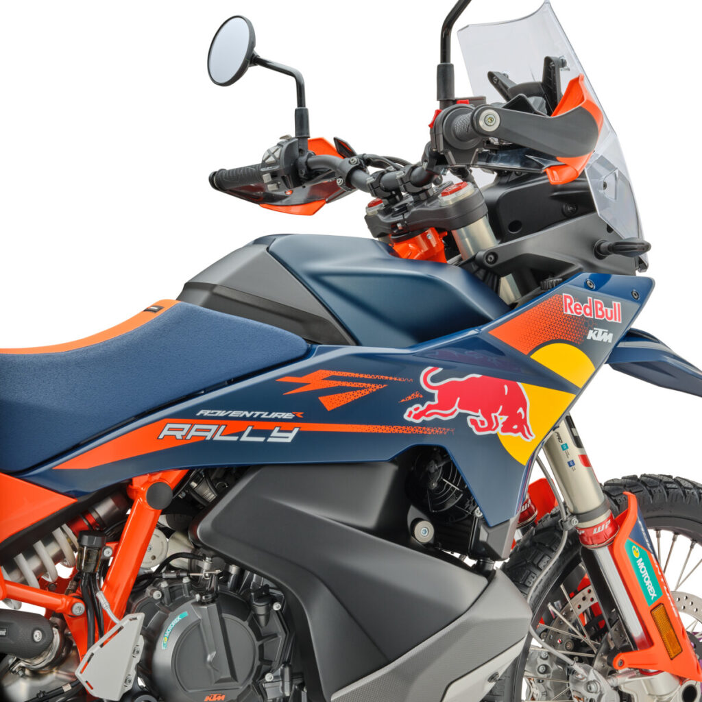 Par rapport à la KTM 890 Adventure R sortie en 2023, cette déclinaison Rally se distingue principalement par l’adoption d’éléments issus des programmes compétition, notamment au niveau des suspensions. On retrouve ainsi un ensemble WP Suspension XPLOR PRO comprenant une fourche avec technologie Cone Valve (XPLOR PRO 7548) et un amortisseur PDS accordé (XPLOR PRO 6746) , offrant tout deux 270 mm de débattement.