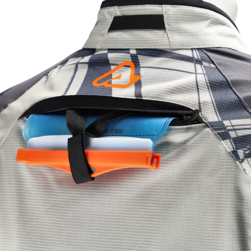 Les six poches – dont une grande poche dorsale – combinent rangement et flux d’air, et la veste est préparée pour le système Drinky, avec une répartition du poids pensée pour les longues journées de roulage.