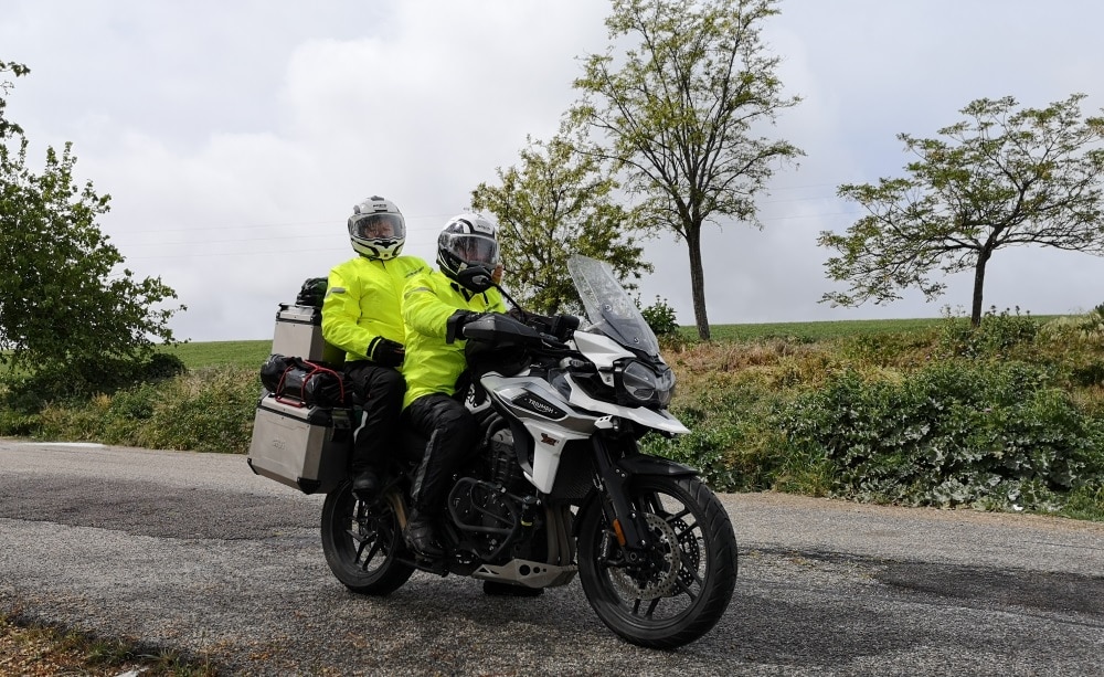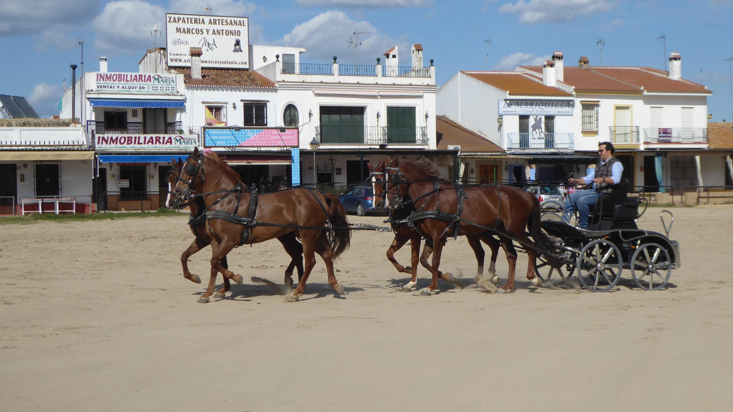 Fin mars 2019, nous y sommes, direction l’Espagne. Nous effectuons les premiers kilomètres avec nos copains motards, mais aussi notre fils Adrien, quel beau cadeau. L’aventure espagnole fut sympa, elle nous a permis de tester les tenues de pluie et notre motivation. Nous sommes heureux, tout simplement. Nous découvrons aussi la liberté et le temps, deux richesses rares. Sans aucun stress, nous nous arrêtons quand nous le souhaitons, pour contempler un paysage, un ciel, rencontrer des gens. La traversée de la péninsule ibérique nous a offert de magnifiques moments et de belles surprises. Comme ces montagnes enneigées tout au sud, la Sierra Nevada ou le village d’El Rocio. Digne d’un western où le cheval est roi… Et où le macadam est invariablement remplacé par du sable.