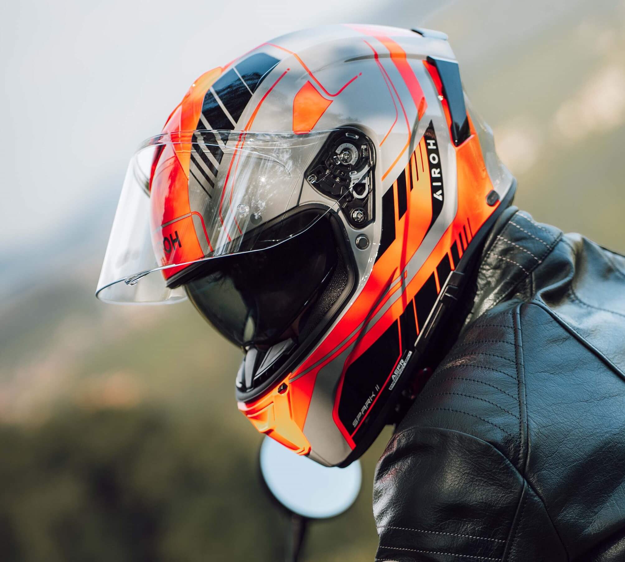 le casque intégral Spark 2 est la dernière nouveauté d’AIROH : avec des lignes fortes et des graphismes attrayants, le nouveau modèle routier de la collection de la marque propose une combinaison idéale entre confort et performance. Doté d’un système de ventilation évolué, conçu dans la soufflerie d’AIROH, d’un écran extra-large et d’un pare-soleil intégré rétractable, le Spark 2 est un casque intégral développé avec un objectif confort et le plaisir de conduire, sans oublier sécurité et protection.