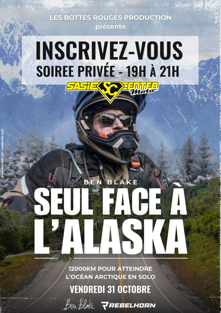 Le réalisateur et voyageur Ben Blake vous donne rendez-vous jeudi 31 octobre 2025 à 19h chez Sasie Center (Pontault-Combault, 77), pour une projection en avant-première exclusive de son nouveau film : Seul Face à l’ Alaska.