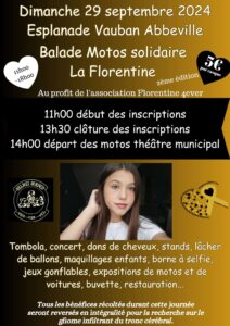 Le 29 septembre à Abbéville, dans la Somme, l’association Florentine 4ever organise une balade à moto solidaire. Son but : sensibiliser le grand public aux cancers pédiatriques. Comme celui qui a emporté Florentine, qui avait fait promettre à son père d’organiser une balade à moto quand elle serait guérie… Ce dernier, sa mère et son frère ont donc choisi de se battre pour tous les enfants atteints d’un cancer.
