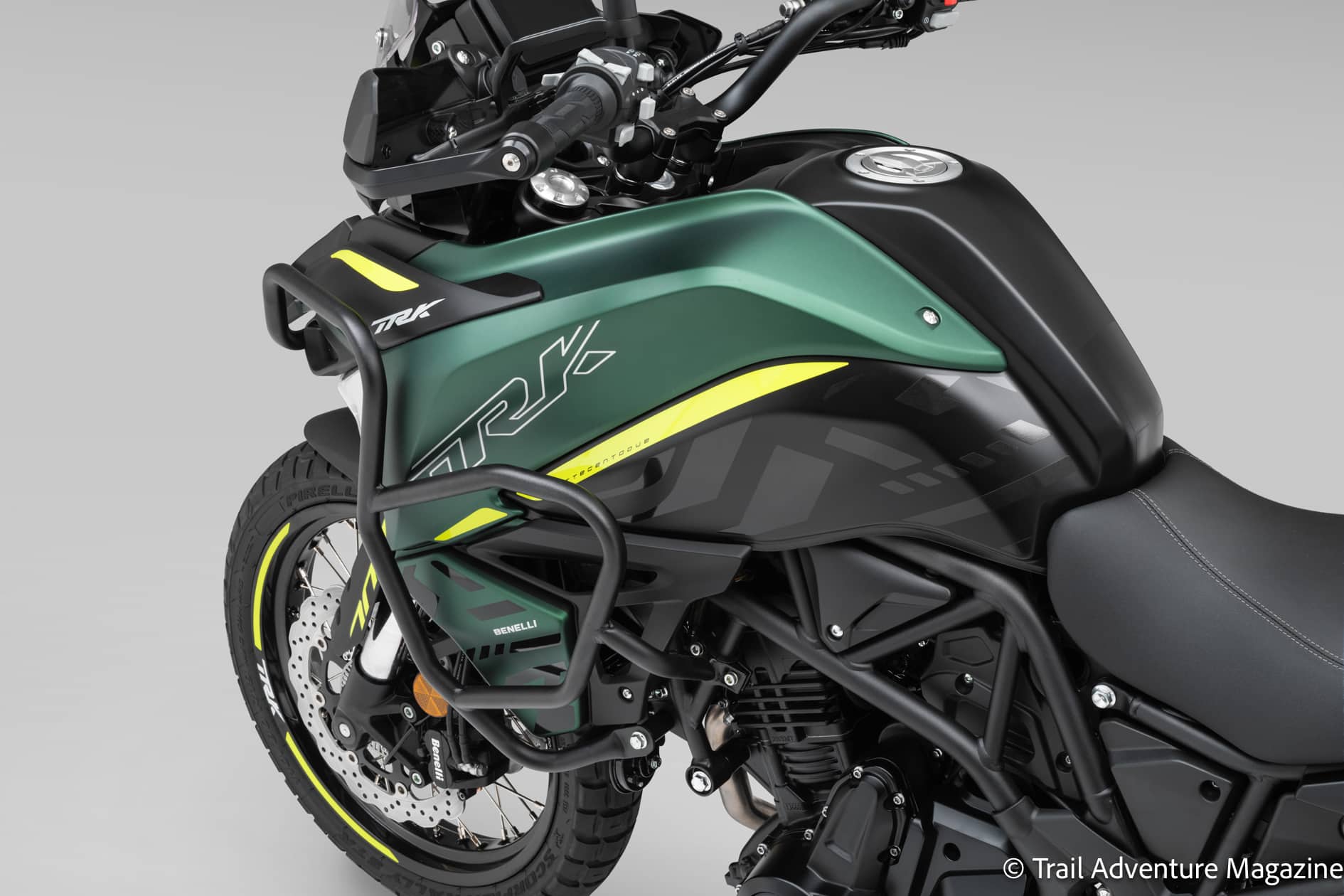 Toujours conçues à Pesaro par les équipes R&D et design de Benelli, les deux TRK conservent un éclairage full LED et intègrent désormais des crash-bars de série pour une meilleure protection. Côté instrumentation, on retrouve un écran TFT couleur de 5 pouces avec connectivité Bluetooth et Wi-Fi, compatible avec une application mobile permettant la gestion des appels et notifications. Deux ports USB (A et C) sont également présents.