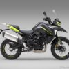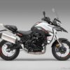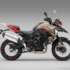 La TRK 702X s’adresse à un usage plus mixte grâce à ses roues à rayons (19″/17″) équipées de pneus Pirelli Scorpion Rally STR, une suspension avant offrant 173 mm de débattement et une hauteur de selle de 835 mm.