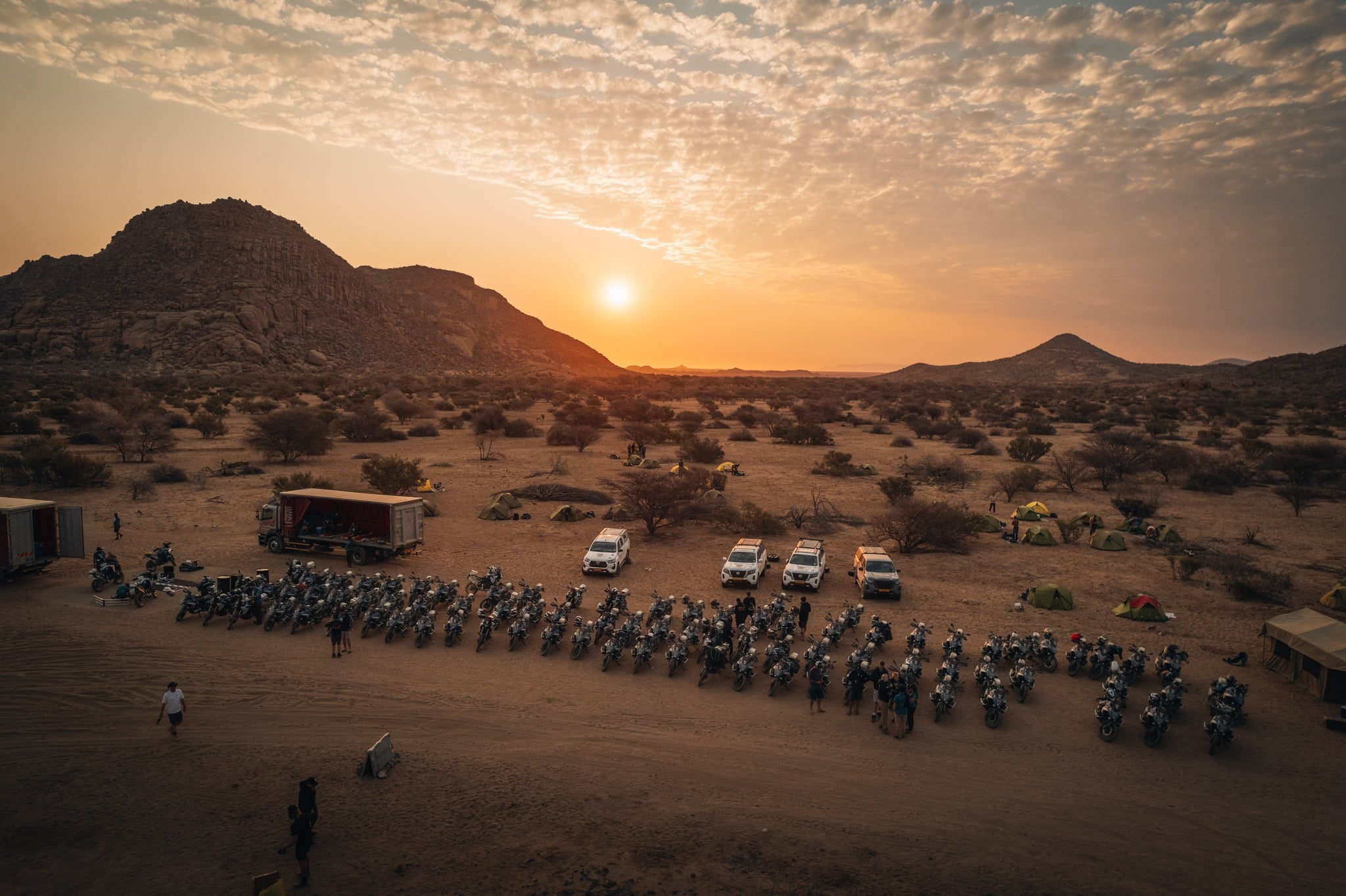 À la fin de la journée, les participants ont atteint le Ai Aiba Rock Painting Lodge, un campement niché entre d’imposants blocs de granit, au pied de la chaîne de montagnes Erongo. Ce lieu mystique, riche en histoire, est célèbre pour ses peintures rupestres millénaires. Les pilotes ont également eu l’occasion de participer au troisième défi de la journée : le Défi photo, où ils ont dû capturer des clichés qui seront jugés par BMW.