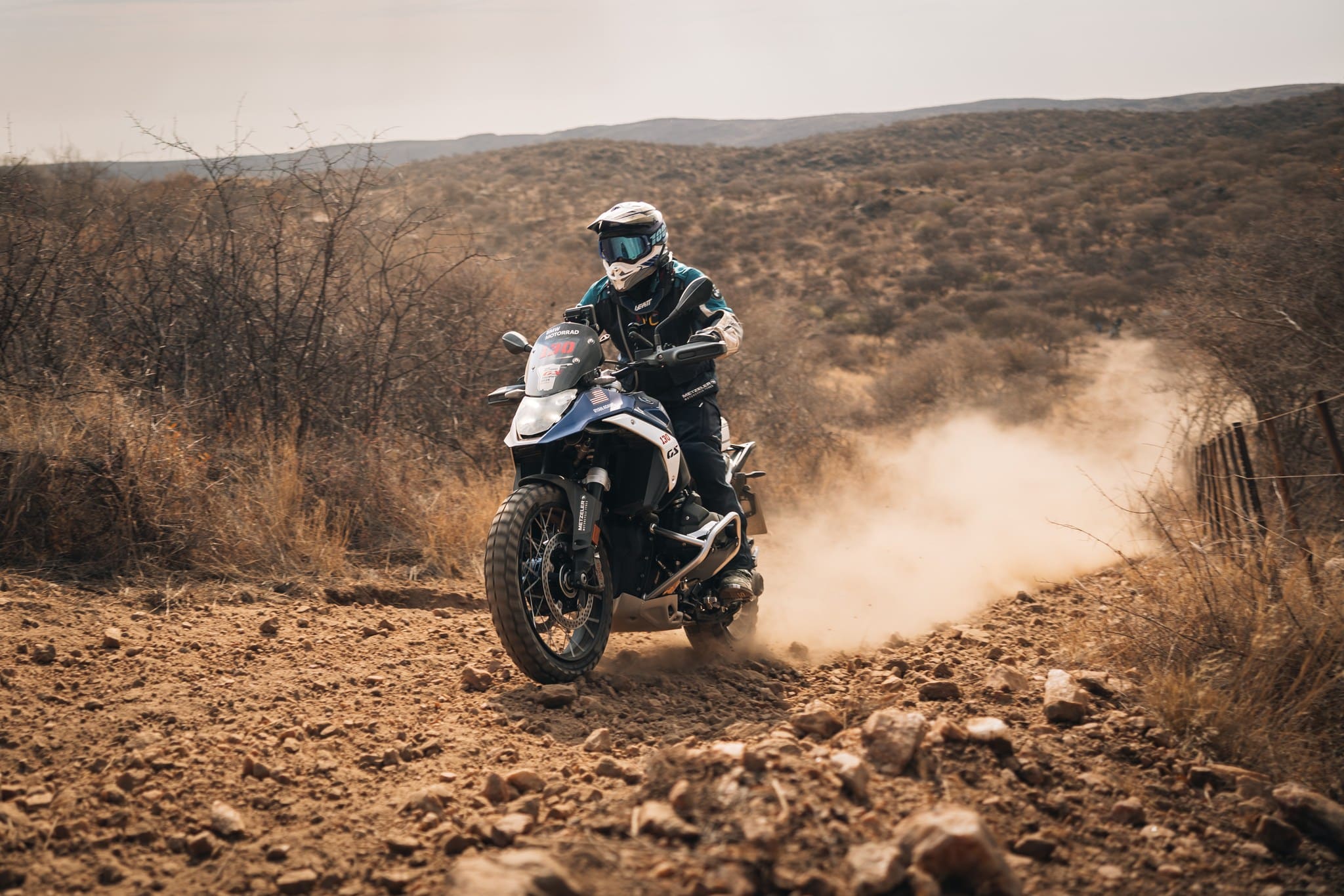 Après un déjeuner bien mérité à Omaruru, un charmant village connu pour ses vignobles et sa scène artistique, les participants étaient prêts pour leur deuxième défi spécial : L’AKRAPOVIČ Enduro Challenge.