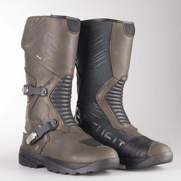 Caractéristiques : Matière : cuir huilé pleine fleur combiné à du cuir suédé Eléments de confort : zones matelassées devant et derrière ; collet souple, rembourré et ergonomique Doublure : E-Dry étanche et respirante Protections : renforts de tibia et de malléoles ergonomiques en PU ; inserts de protection des orteils et du talon ; renforts de sélecteur ; protection interne en peau chamoisée, antichaleur et adhérente Fermeture : 2 boucles microréglables en aluminium Semelle extérieure : à double densité, bicolore Coloris : brun ou noir Taille : 38 - 48 Prix : 219,99 € Distribution : www.eleveit.it