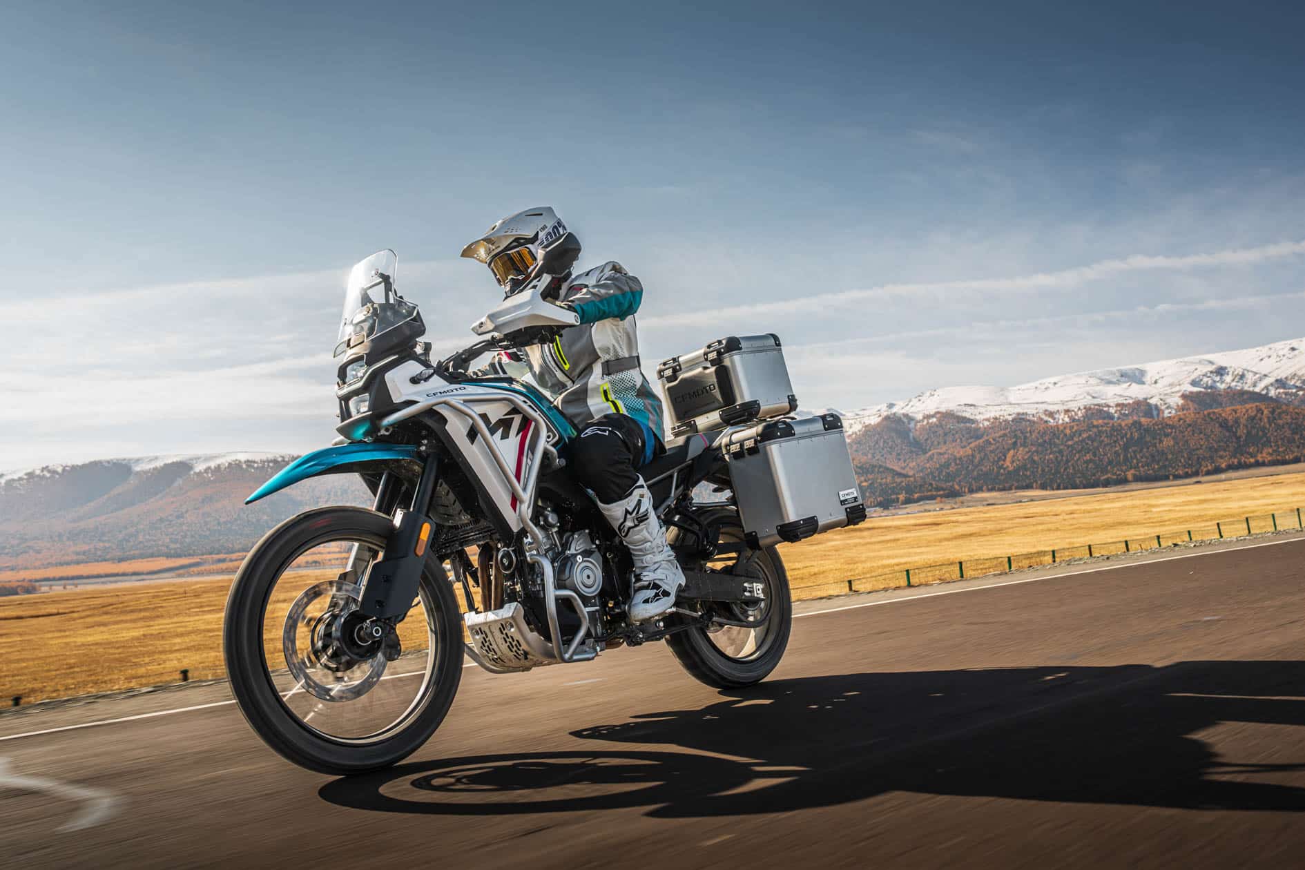Contrairement à ses concurrents nationaux qui proposent principalement des trails midsize à roues de 19/18 pouces équipés de suspensions pensées pour la route, CFMOTO propose une moto très typée off-road, avec des suspensions KYB réglables au débattement conséquent (200 mm) et des jantes tubeless à rayons tangentiels en 21 et 18 pouces. La garde au sol serait quant à elle de de 220 mm et la hauteur de selle de 820 mm.