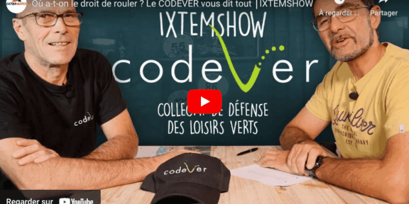 Où a-t-on le droit de rouler dans les chemins ? Comment vérifier une trace ? Quelle est la légalité des panneaux ? quels sont les différents types de chemins ? L’utilisation de Geoportail peut-elle aider à sécuriser ses traces ? Quel comportement avoir en cas de contrôle… Telles sont les questions posées à Benoit RAYNAUD représentant du CODEVER dans le 94, dans la nouvelle saison de l’IxtemShow présenté par Michel Das Neves. Une mine d’information pour nous les trailistes … Lire la suite de Vidéo : Où a-t-on le droit de rouler dans les chemins