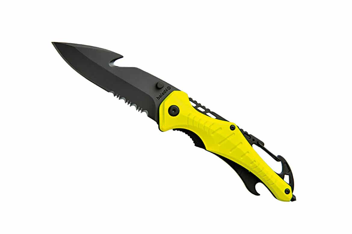 Mieux que le célèbre outil de Rahan, le couteau Baladeo. Un ange gardien qui veillera sur vous. Et pas seulement grâce à sa lame de 12 centimètres. Avec ses accessoires intégrés, il est capable de briser une vitre, couper une ceinture, une corde, scier une petite branche, ouvrir une boîte de conserve… Même décapsuler une bouteille de bière ce qui, au soir d’une journée d’aventure, peut sauver son homme. Ses deux crochets facilitent son port à ceinture, mais il peut être également vendu avec étui de transport. En tout cas, à 148 grammes, il se fait vite oublier.
