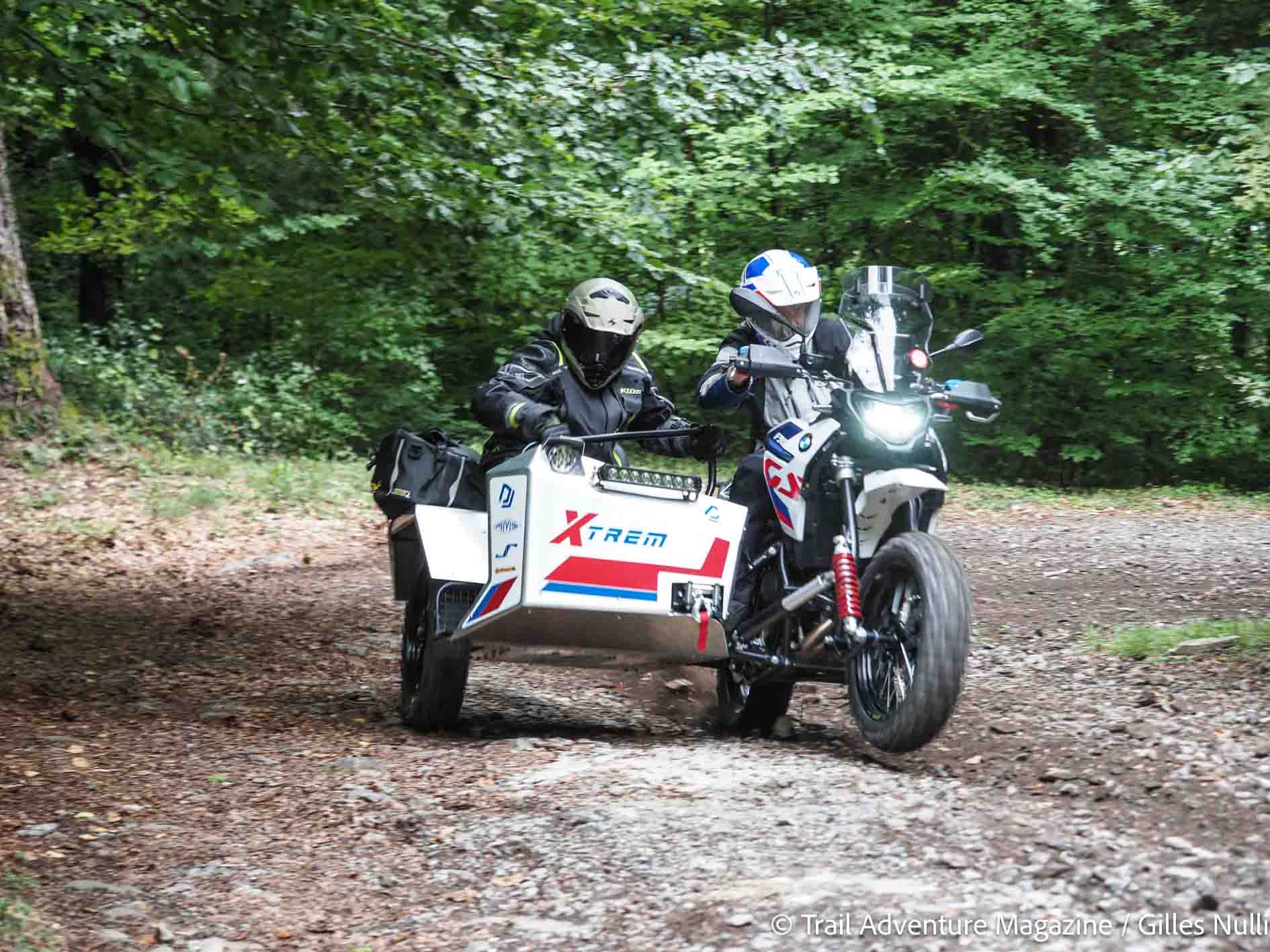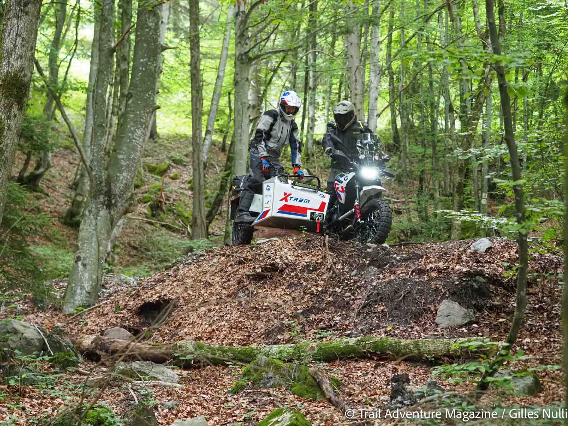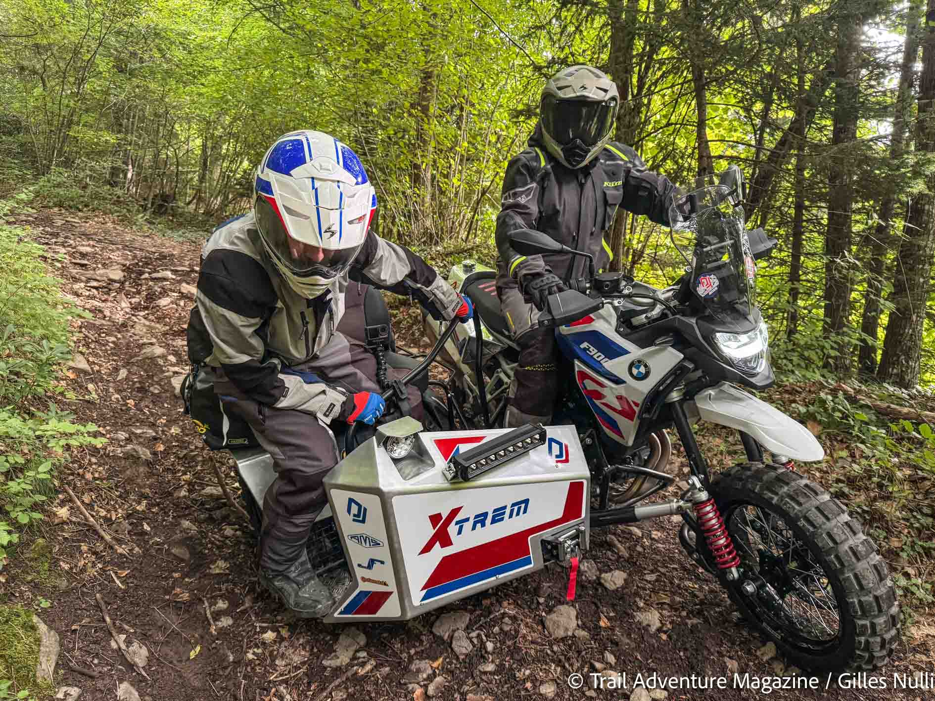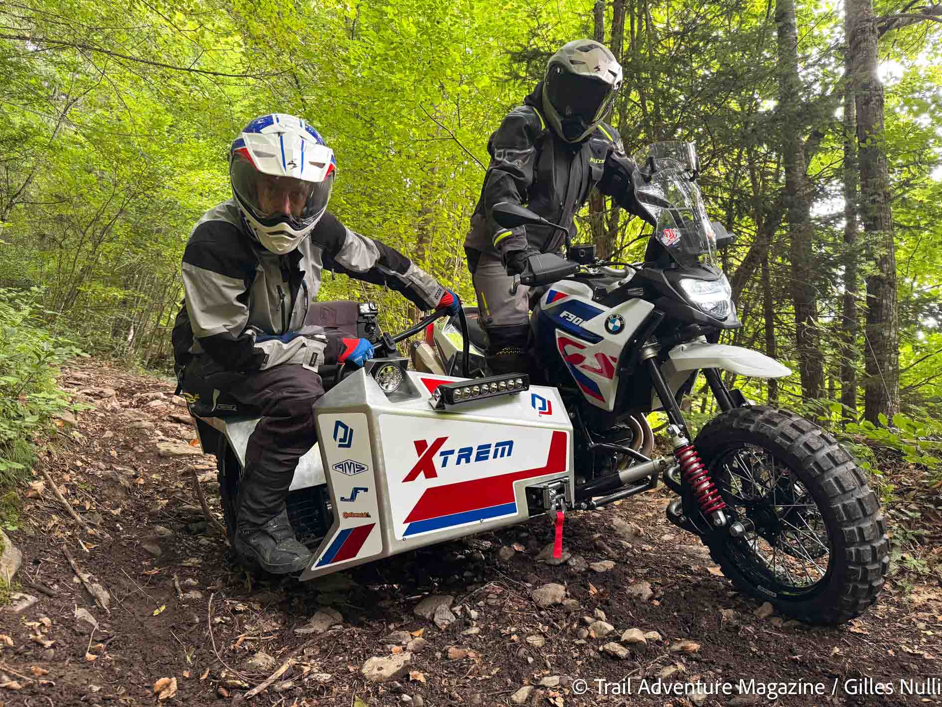 Côté technique, l’attelage reçoit un réservoir additionnel de 12 litres pour compenser l’autonomie limitée de la F900GS, un treuil, des roues interchangeables (la roue avant peut basculer sur le panier) et des jantes renforcées maison. La garde au sol atteint 300 mm.