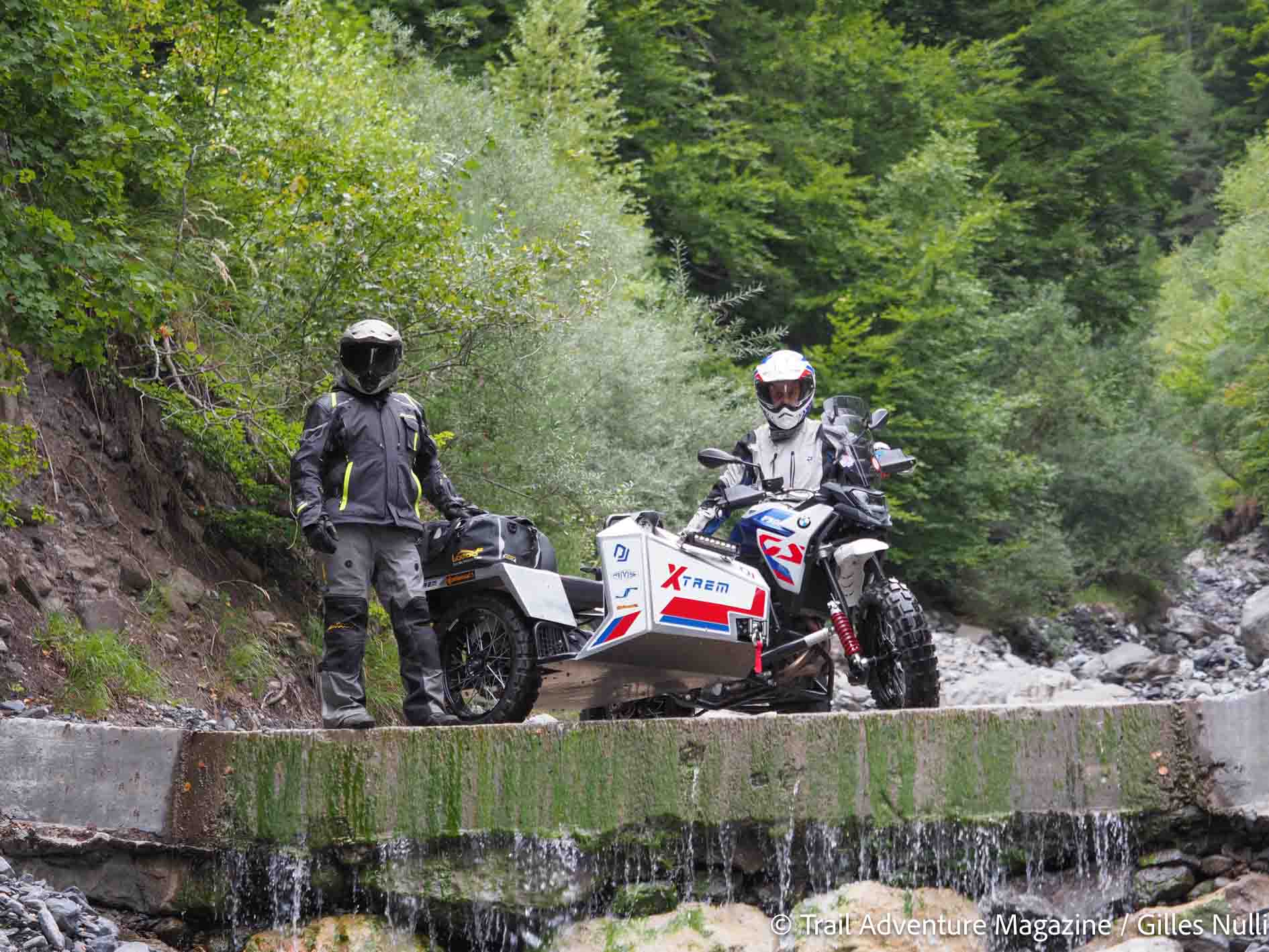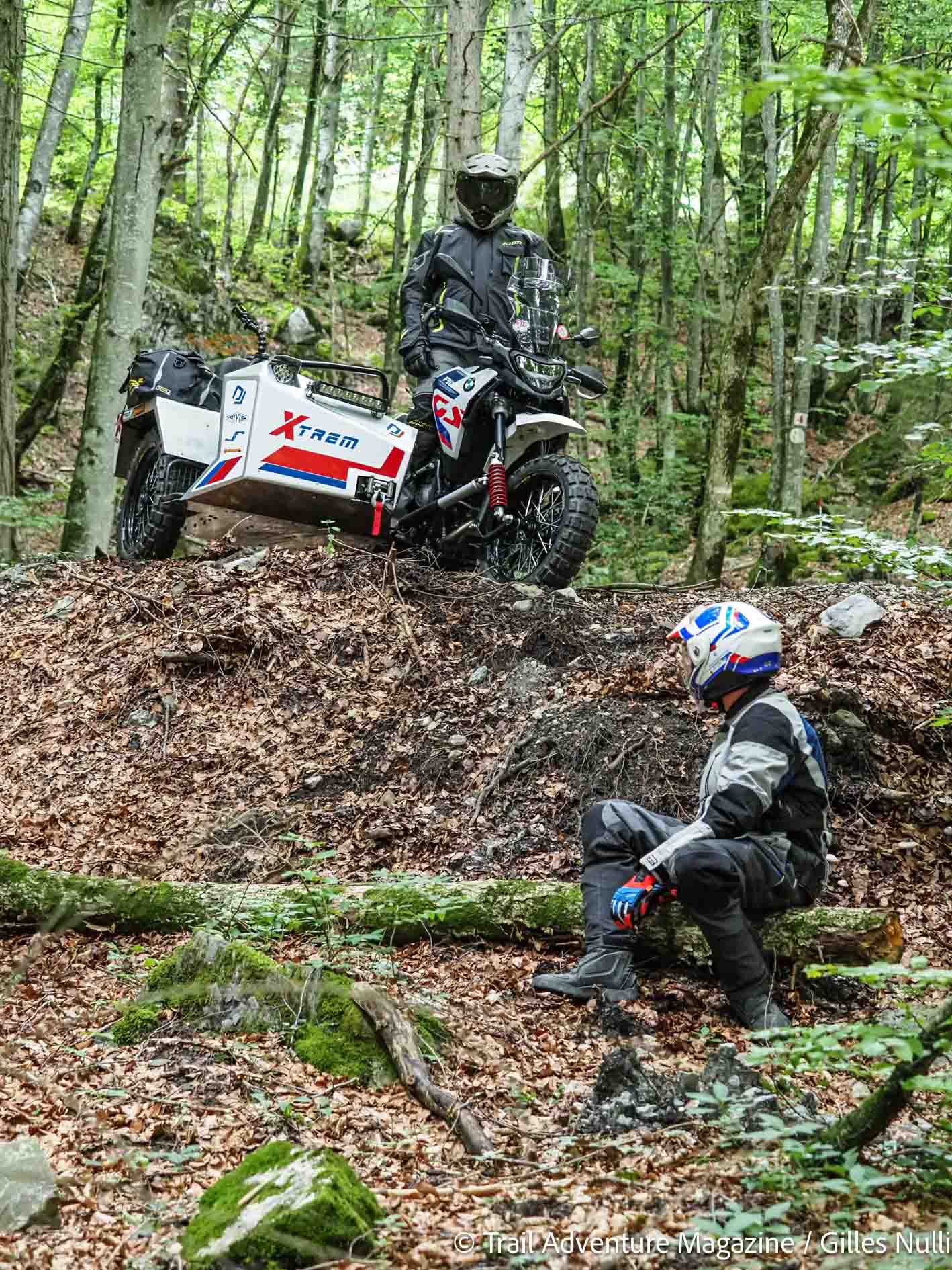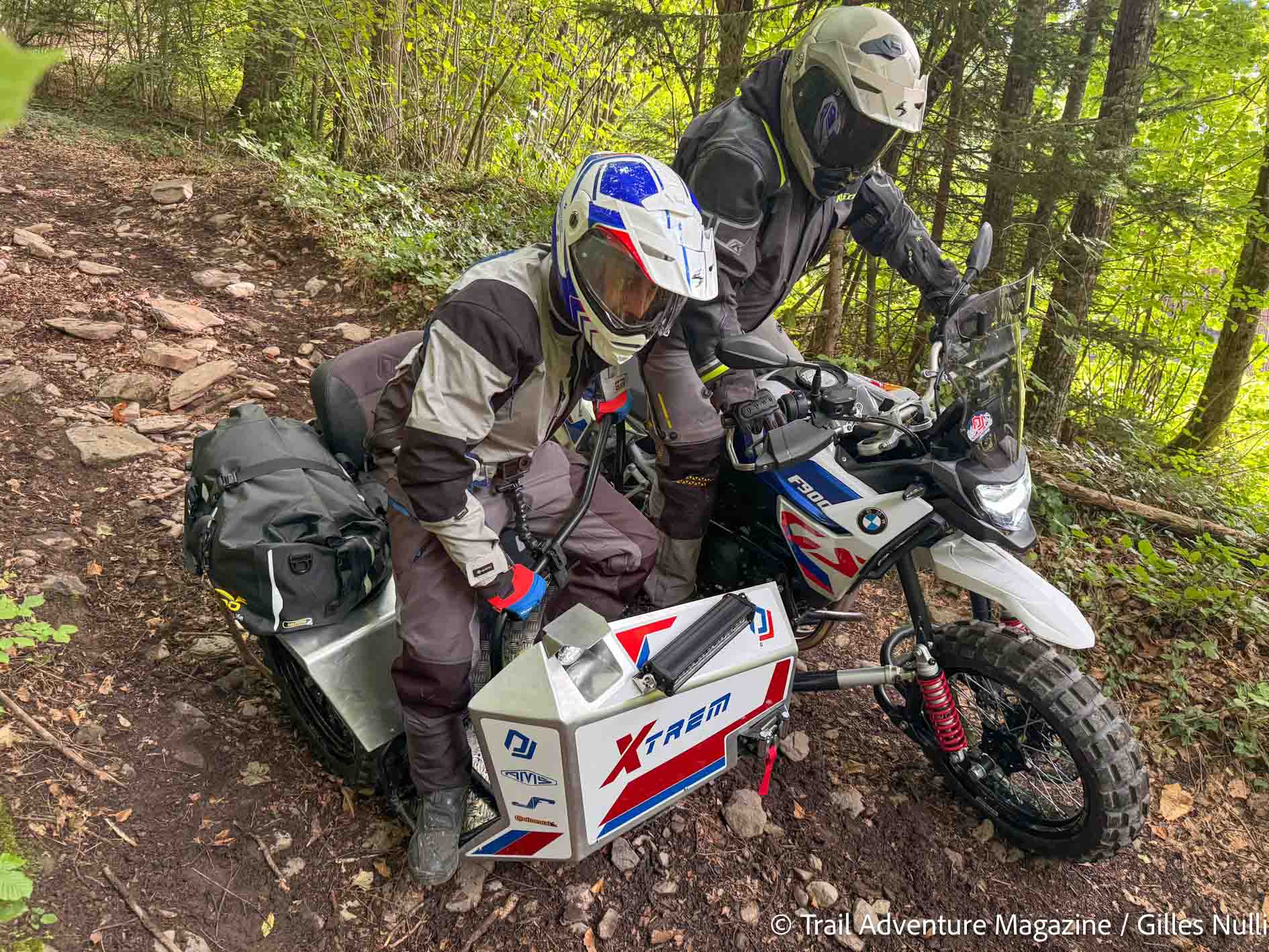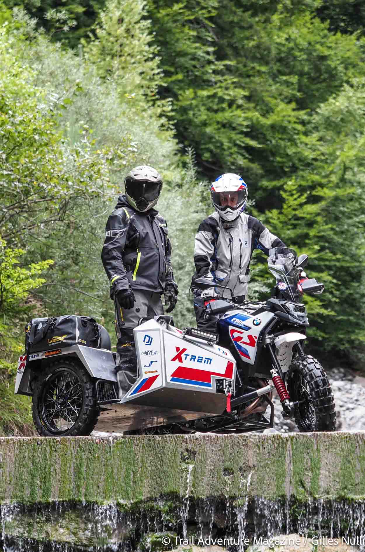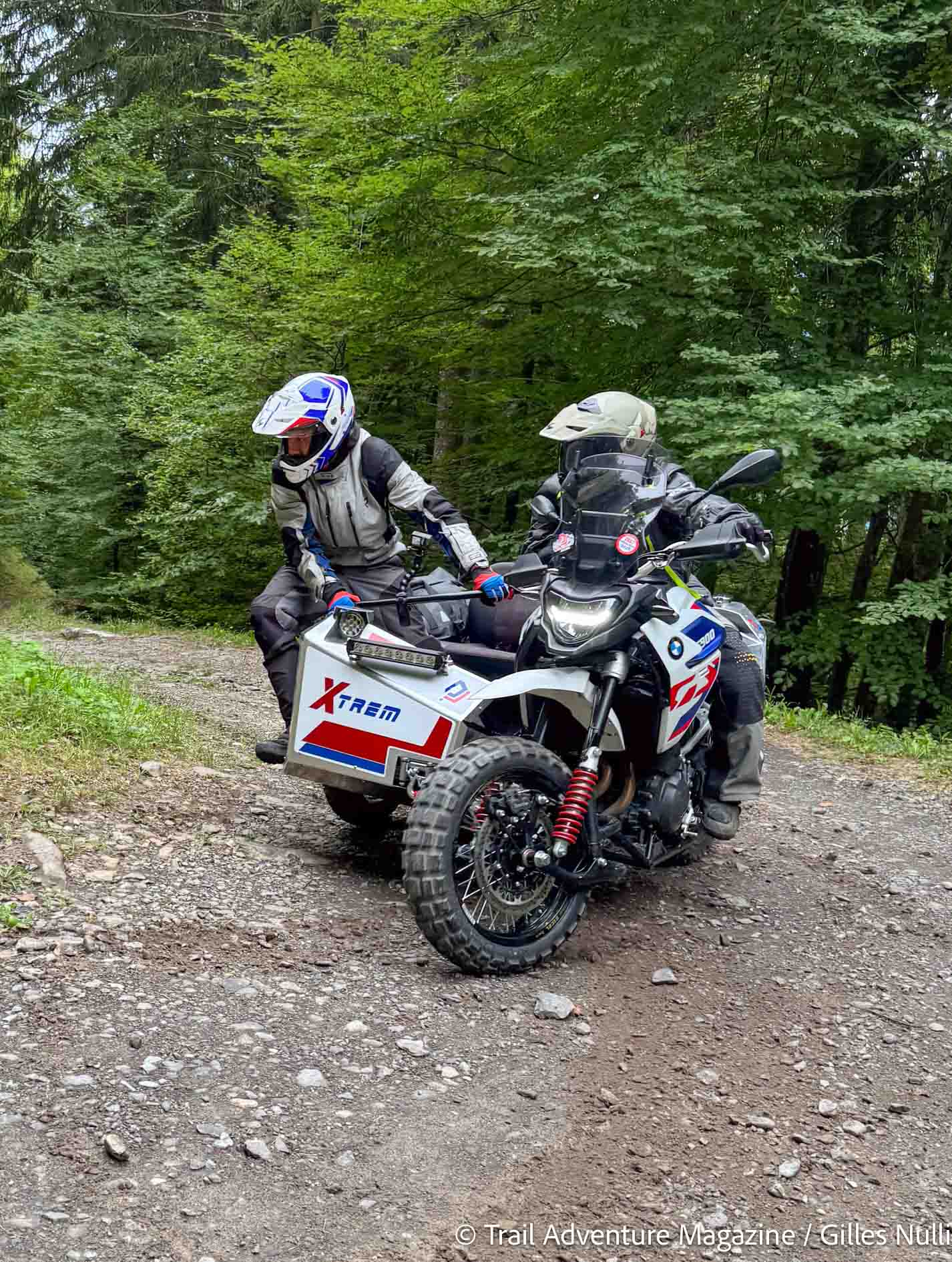Côté technique, l’attelage reçoit un réservoir additionnel de 12 litres pour compenser l’autonomie limitée de la F900GS, un treuil, des roues interchangeables (la roue avant peut basculer sur le panier) et des jantes renforcées maison. La garde au sol atteint 300 mm.