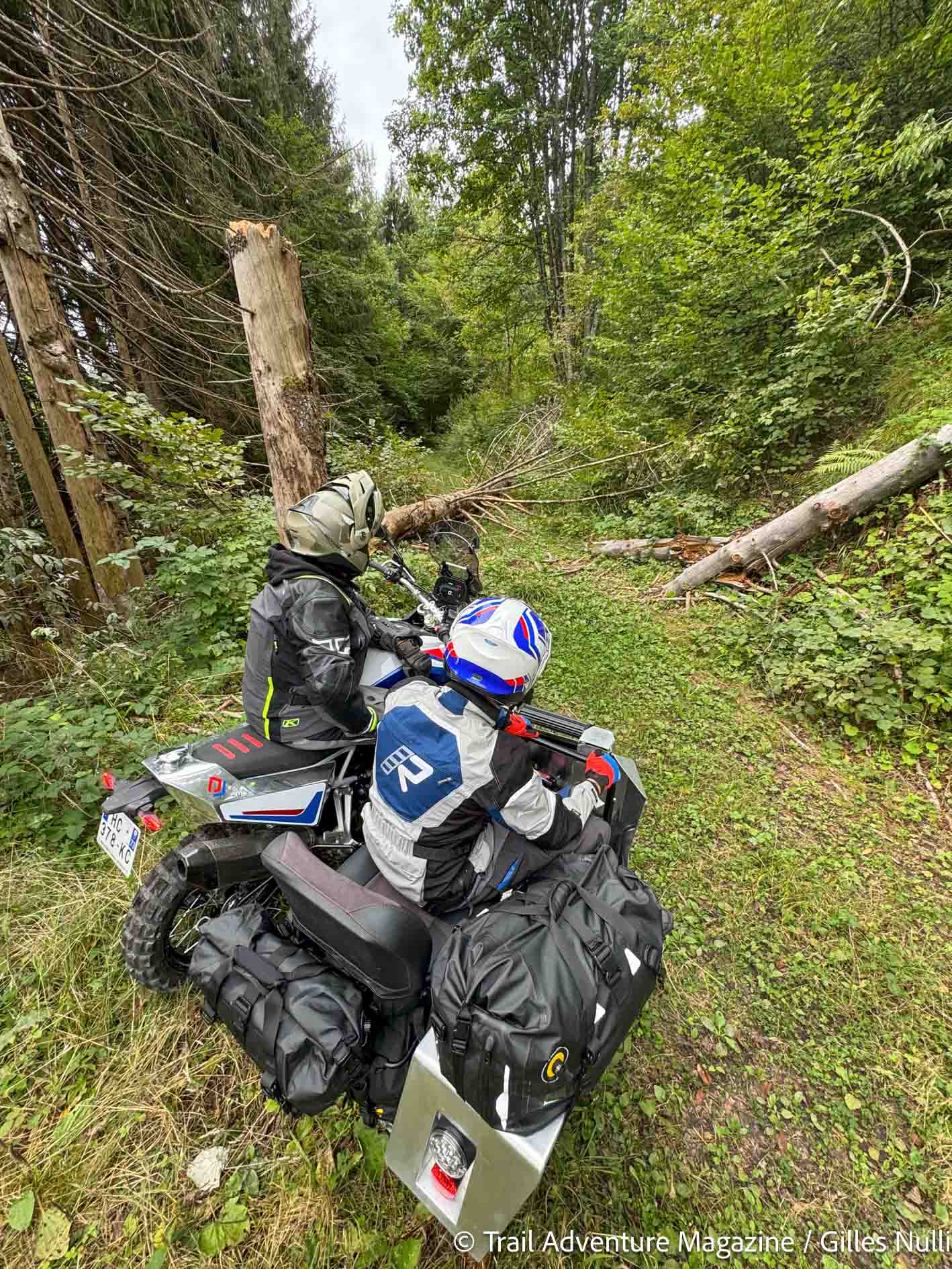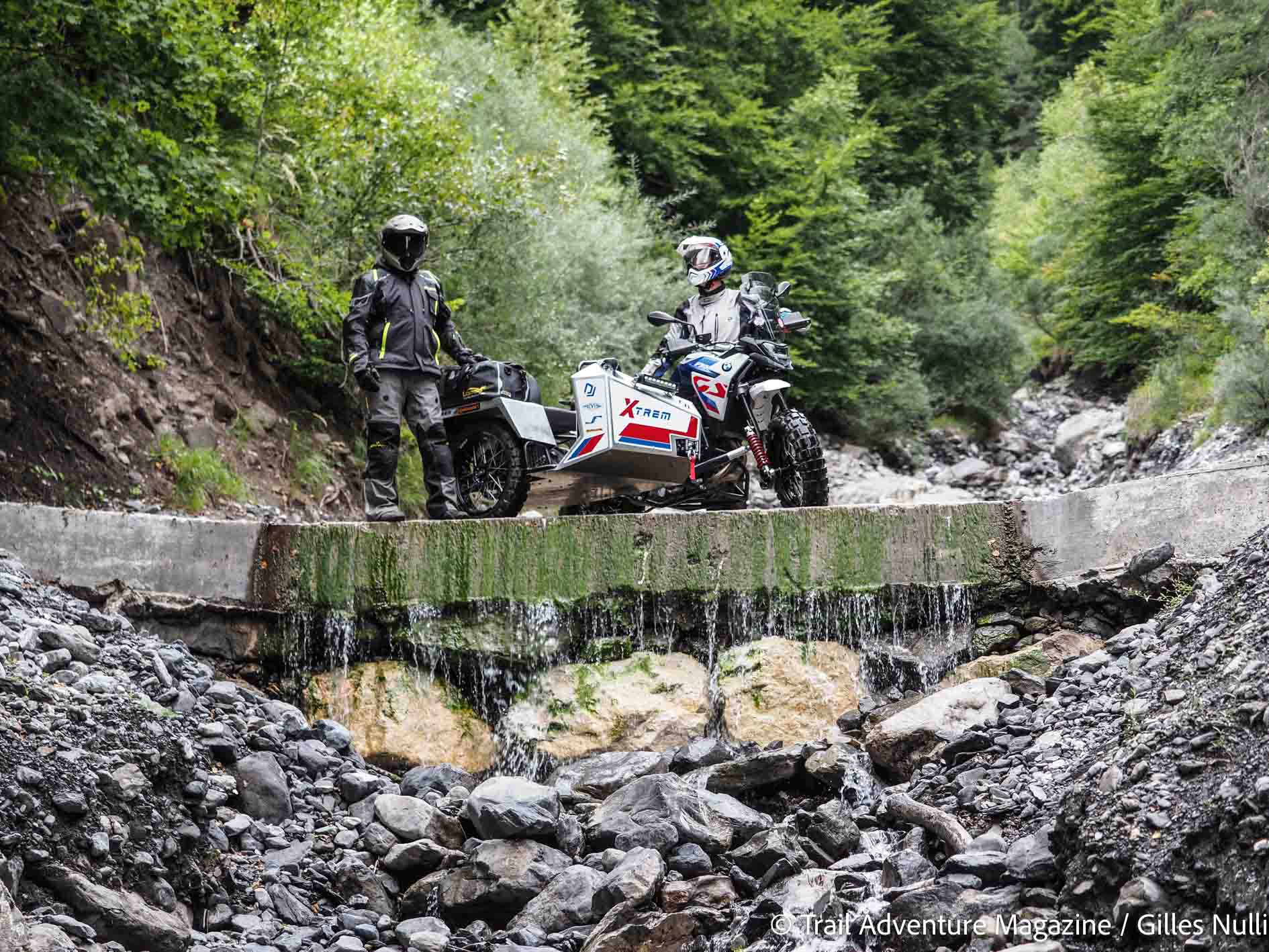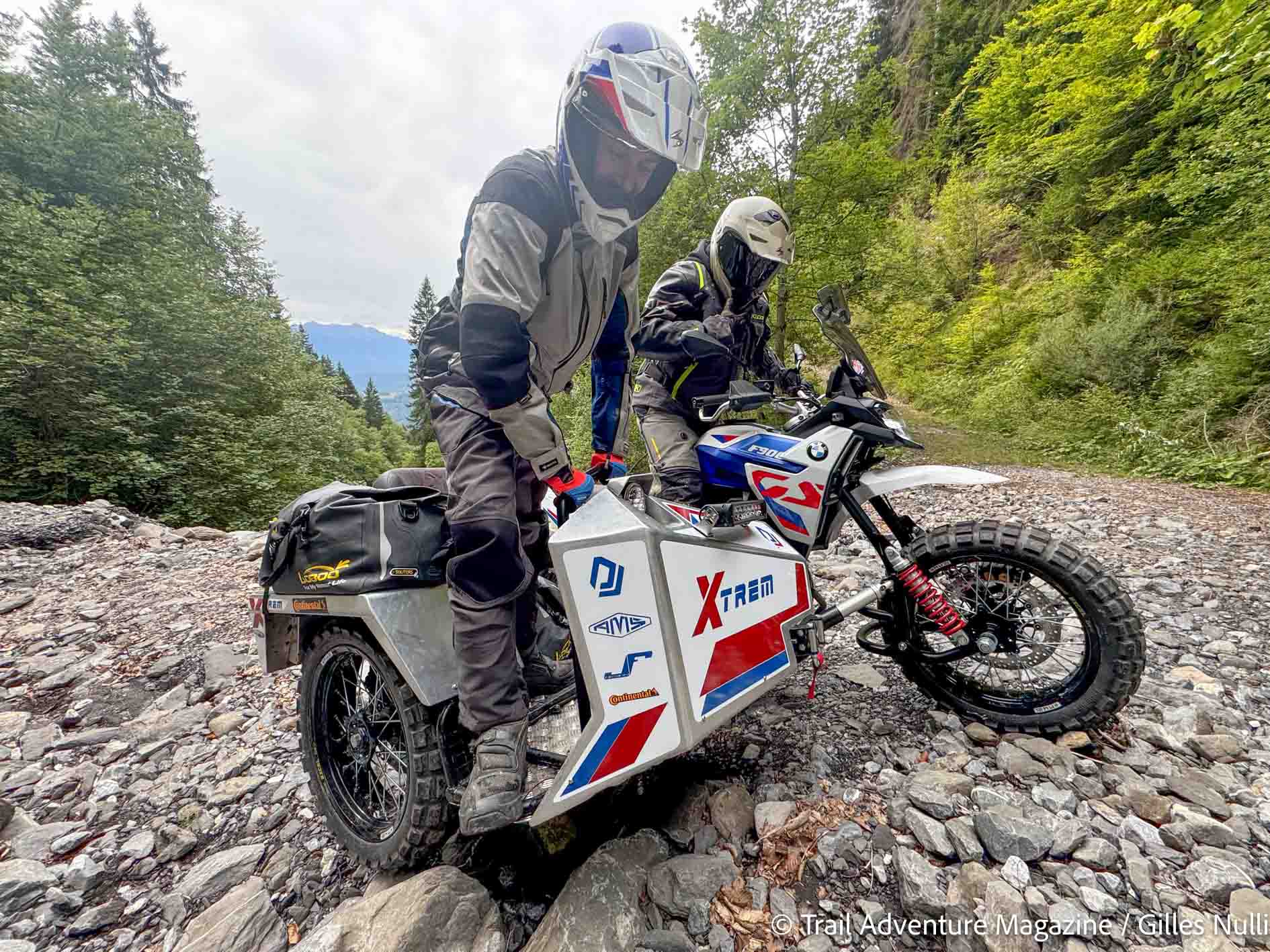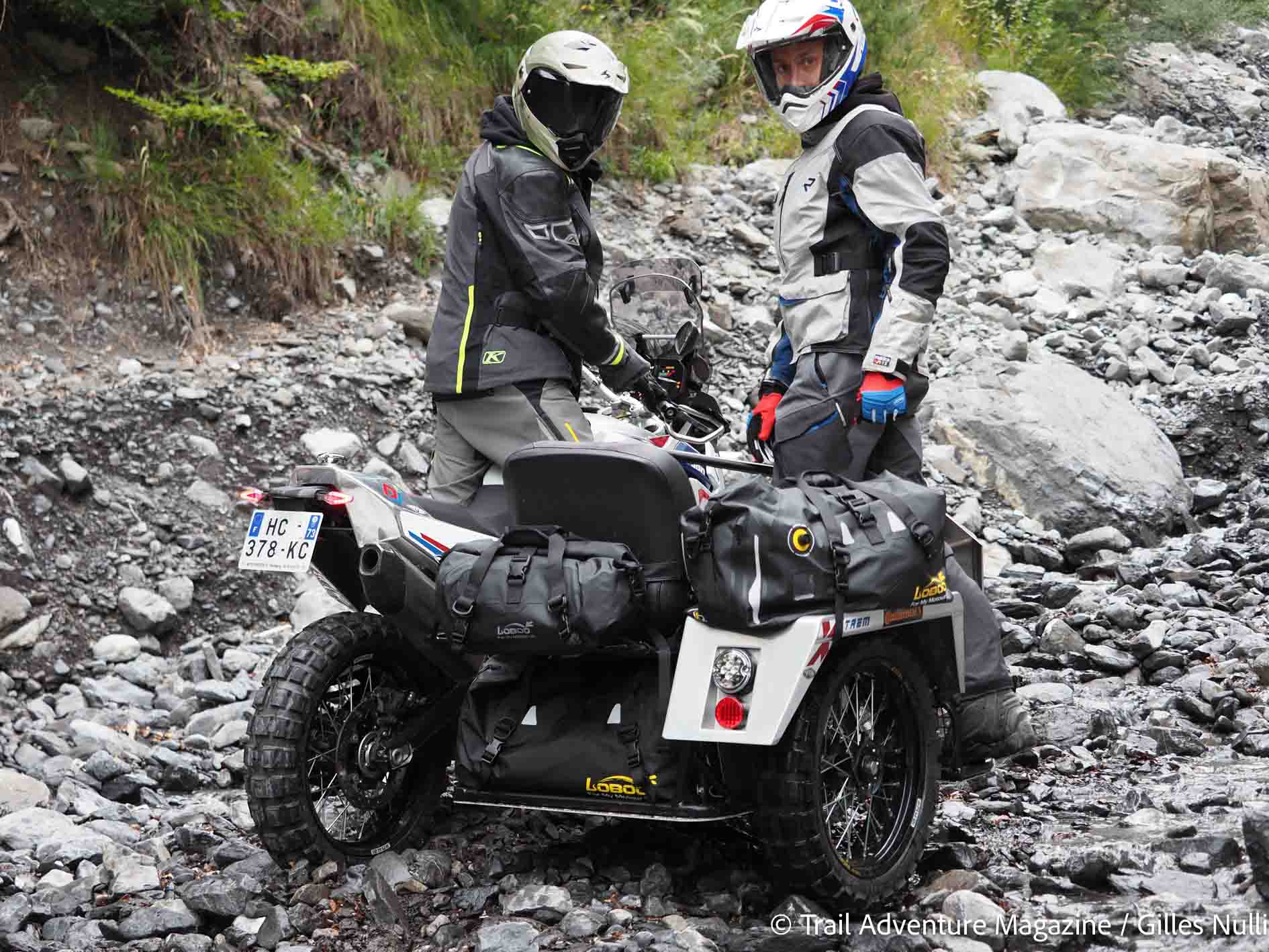 Côté technique, l’attelage reçoit un réservoir additionnel de 12 litres pour compenser l’autonomie limitée de la F900GS, un treuil, des roues interchangeables (la roue avant peut basculer sur le panier) et des jantes renforcées maison. La garde au sol atteint 300 mm.