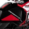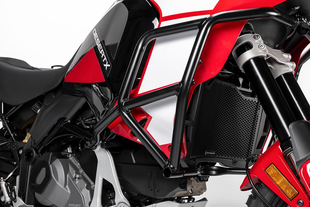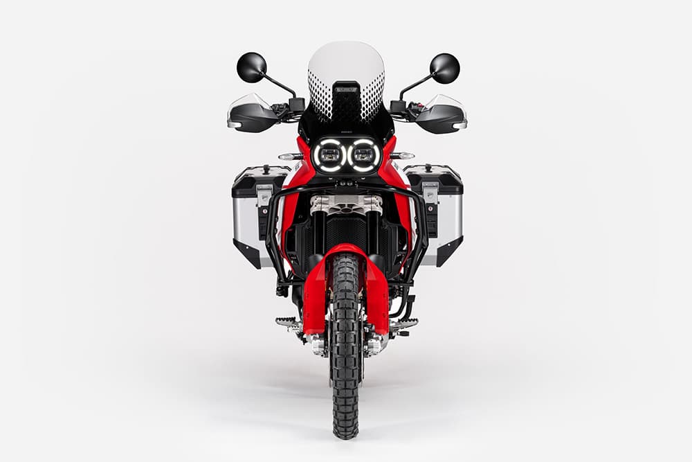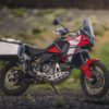 Elue Trail de l’année par nos lecteurs l’an passé, la Ducati DesertX continue de faire parler d’elle. Après une version sportive baptisée Rally, le trail italien est désormais disponible dans une version orientée vers le voyage, via le pack Discovery. Pour 2 500 € supplémentaires, soit 19 990 €, Ducati vous propose des protège-mains renforcés, une protection moteur incluant celle de la pompe à eau, une grille de radiateur et un sabot en aluminium. Les poignées chauffantes, la grande bulle et la béquille centrale font également partie du lot. Le tout est proposé dans une livrée noire et rouge exclusive au modèle.