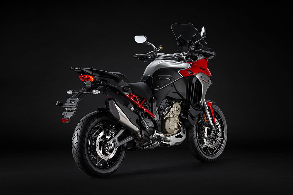 Comme sur les versions précédentes, la V4 Rally intègre le double radar avant/arrière pour le régulateur de vitesse adaptatif (ACC), la détection d’angle mort (BSD) et désormais une alerte de collision frontale (FCW). Les suspensions et le freinage assisté bénéficie d’un nouveau logiciel de gestion, le Ducati Vehicle Observer (DVO), capable d’analyser en temps réel les mouvements de la moto pour ajuster la suspension et le freinage de manière prédictive.