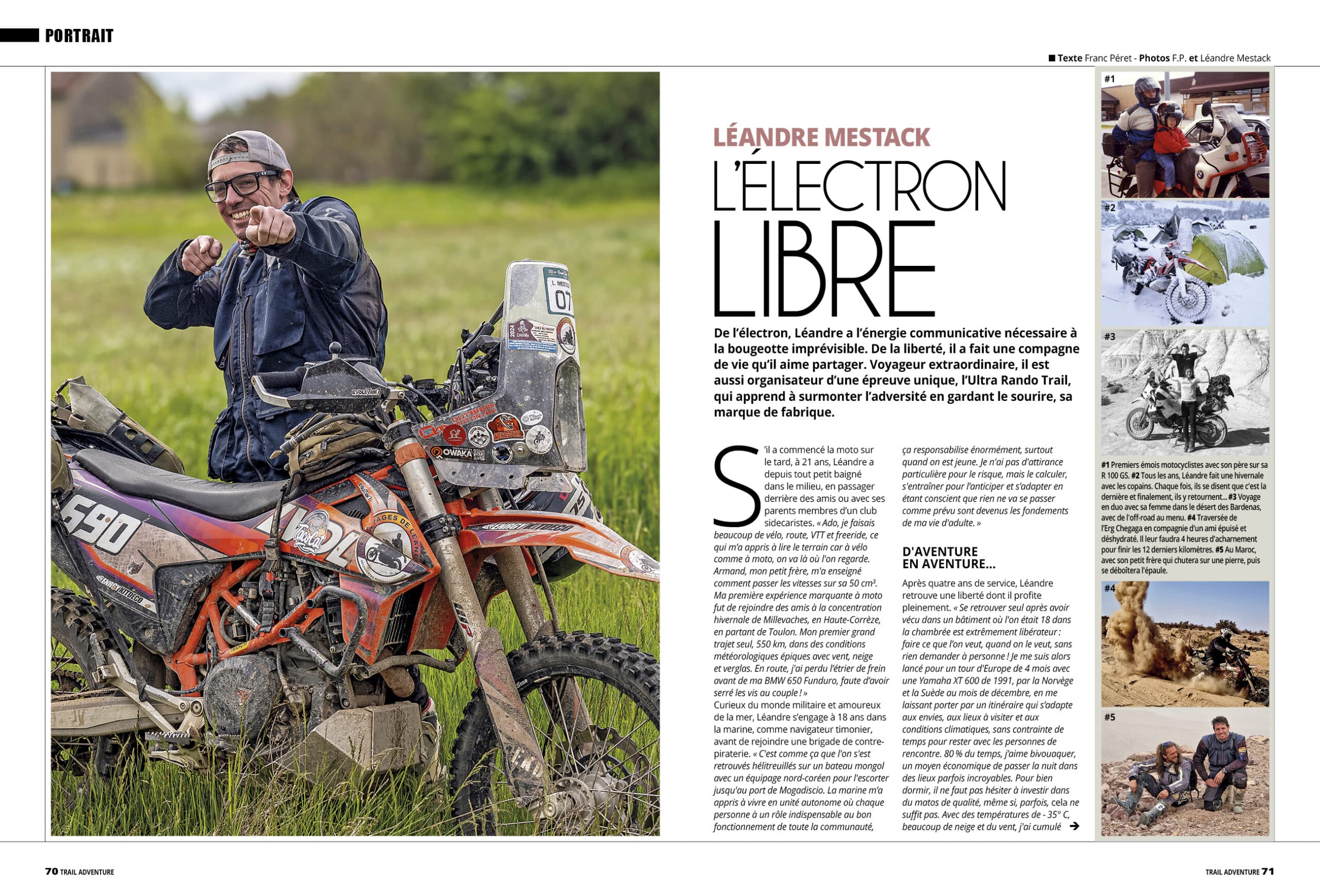 Epidermiques, en hurlant au scandale devant le nombre de motos chinoises à l’essai dans ces pages. Nostalgiques, en retrouvant les vieilles gloires du Dakar réunies lors du merveilleux événement organisé par Mario Dente. Admiratives, en découvrant le parcours de Léandre Mestack, nouveau « linesman » du Trans Euro Trail France au parcours hors du commun.