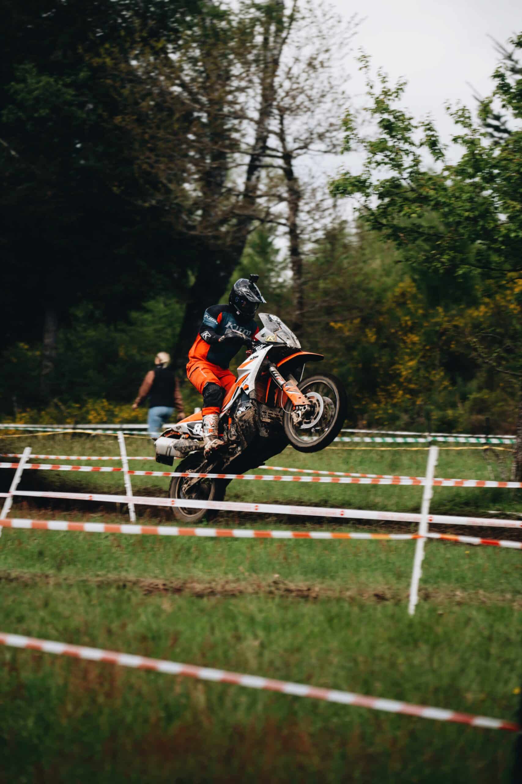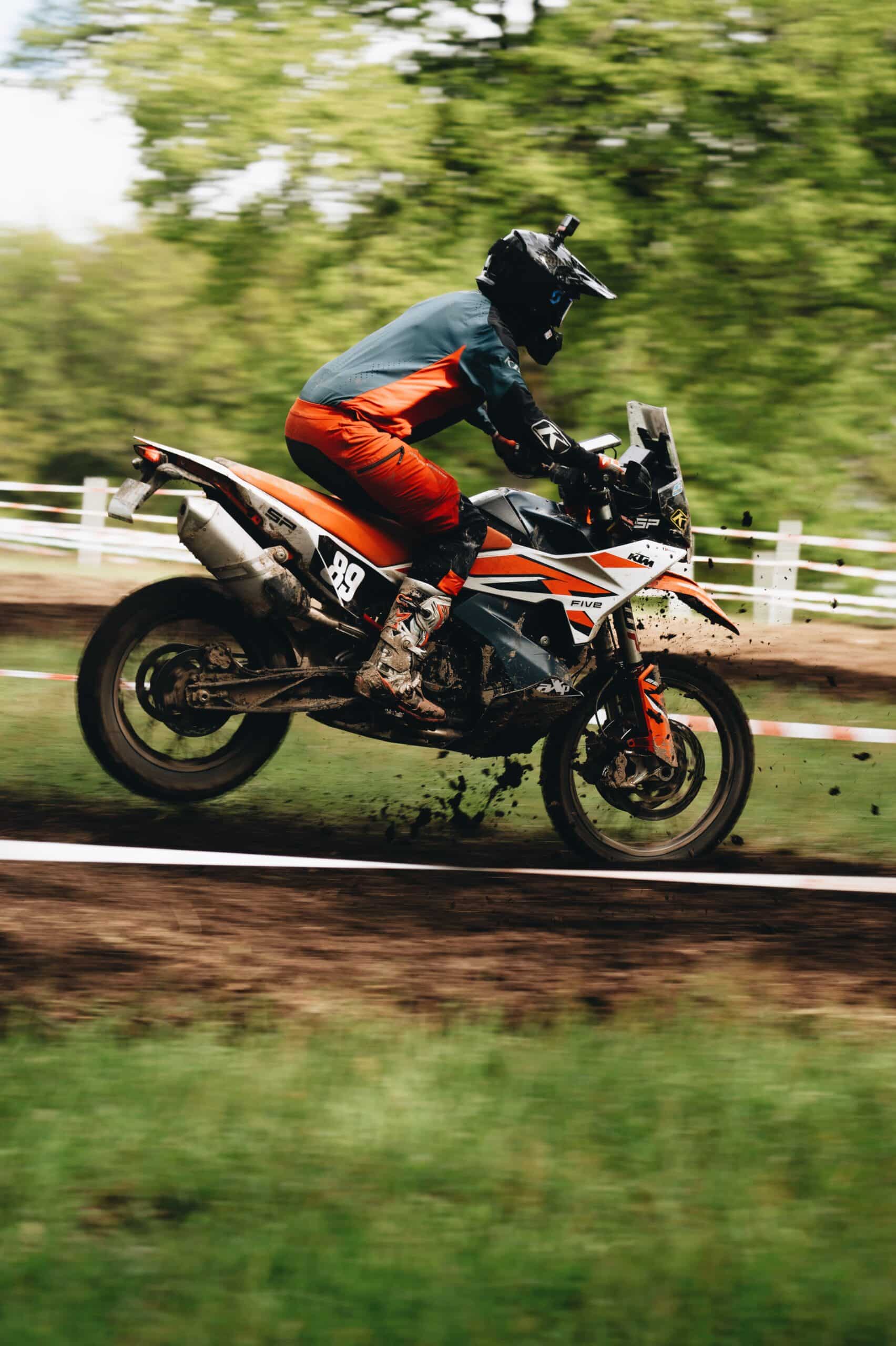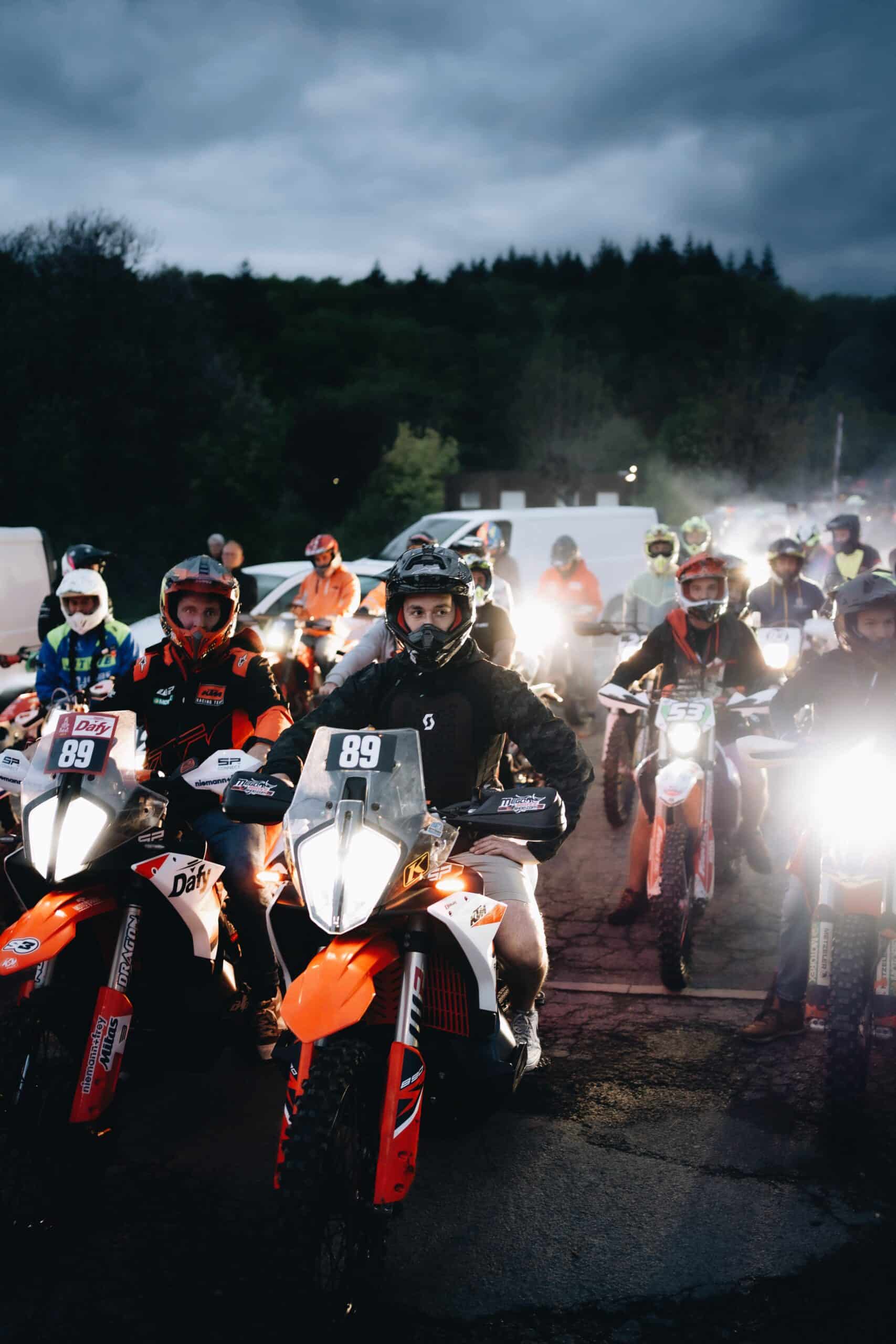 À 17 heures, le terrain sèche et les chronos tombent. La remontée est lancée grâce à une combinaison de sérieux, d’attaque et de cohésion. Greg Gordinne, avec ses glisses et wheelings caractéristiques, et Adrian Jorry, découvrant la KTM 890 R, réalisent des temps impressionnants.