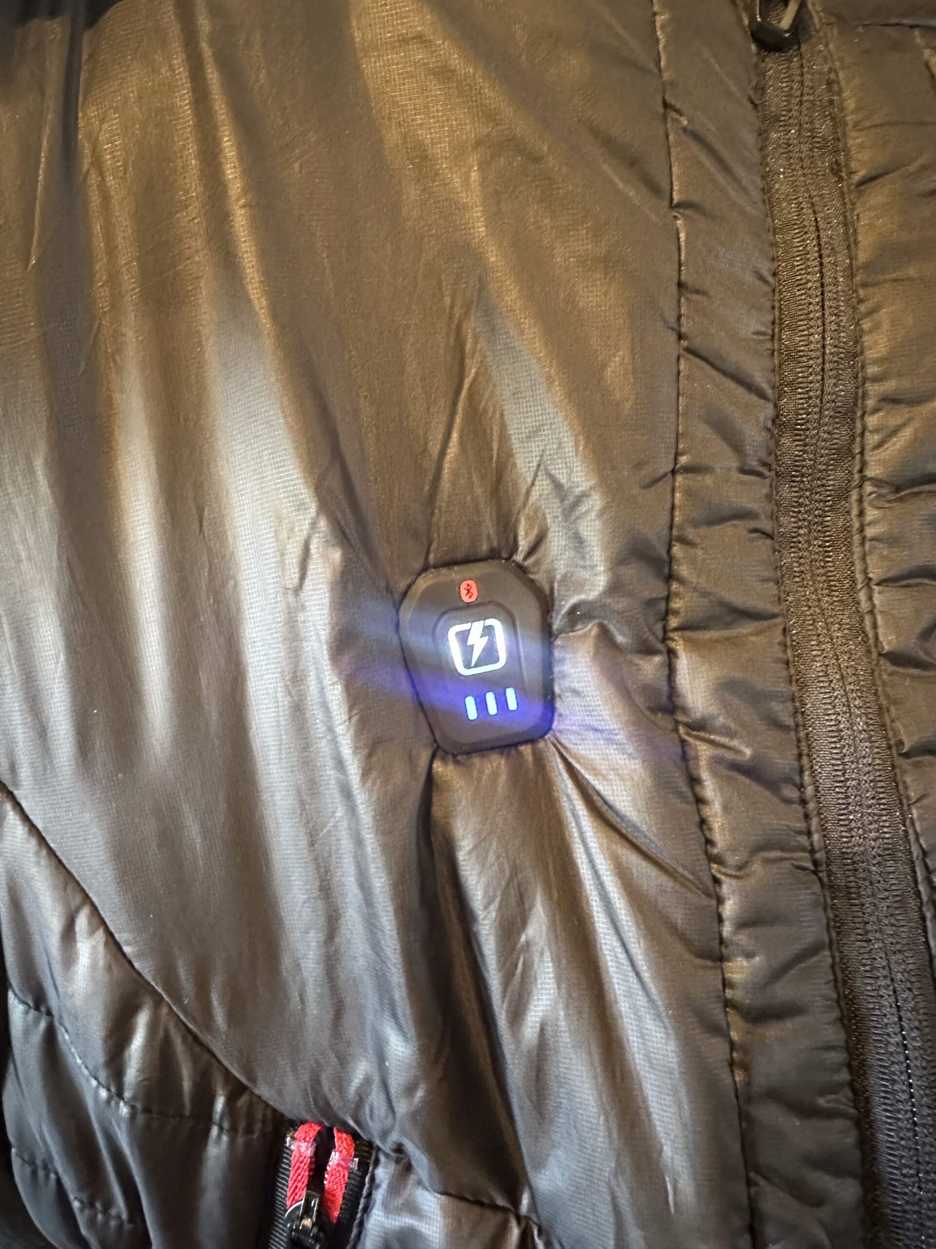 Comme pour les gants, la veste Macna Ascent se connecte en Bluetooth. Grâce à l’application Macna, on peut ajuster le niveau de chauffage, activer une minuterie et vérifier le niveau de batterie de la veste, tout cela à partir de votre téléphone. Cela nous permet de personnaliser facilement le confort thermique pendant vos trajets.