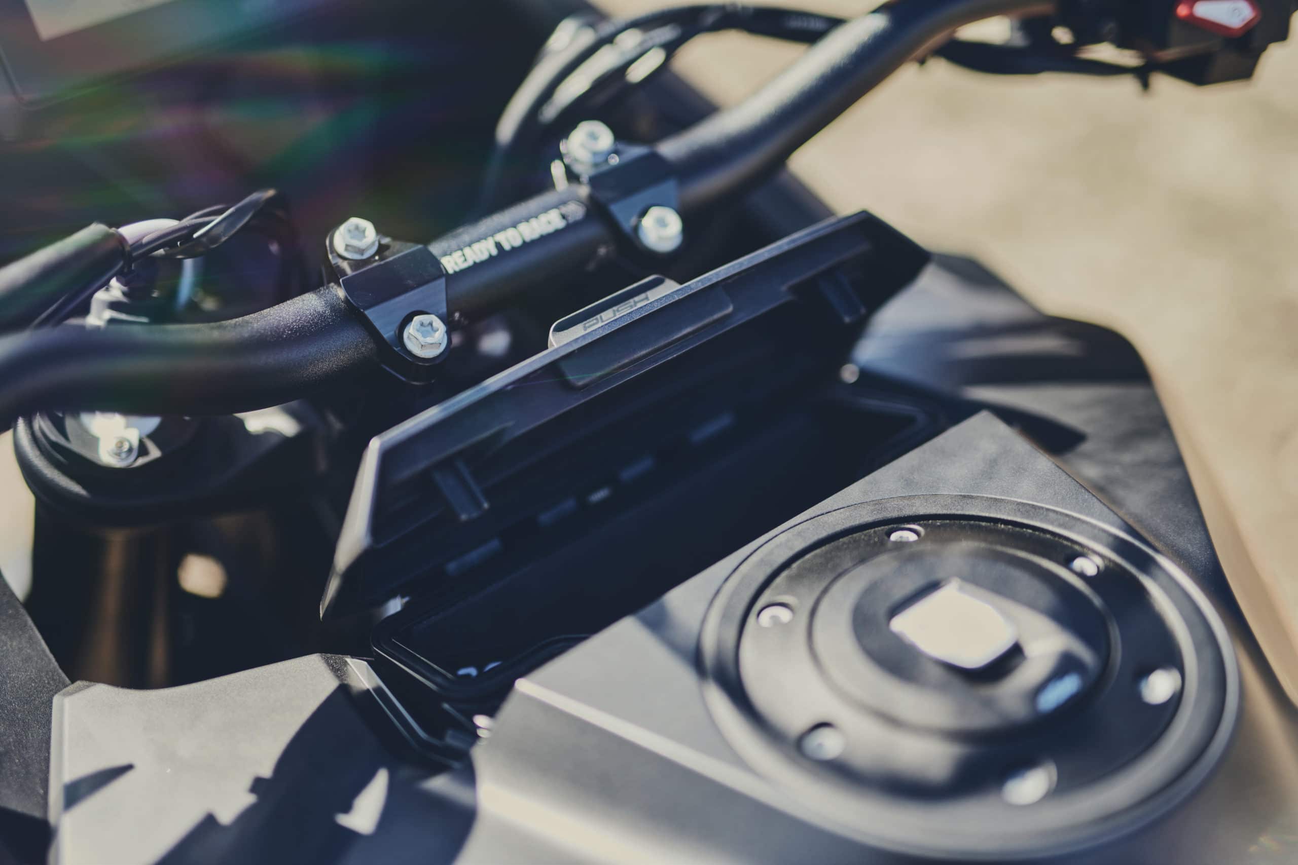Avant d’entrer dans le vif du sujet, un mot sur l’esthétique. Le coup de crayon du studio Kiska n’a pas franchement été bouleversé cette année. Pour autant, le modèle 2021 se distingue un peu de son prédécesseur. Par son nouveau phare à leds qui, surprise, intègre désormais un radar. Si les écopes d’aération, placées de chaque côté de la tête de fourche, ont également été redessinées, le vrai changement. C’est sur le plan de profil de la moto qu’il faut le chercher. Comme les 790/890 Adventure, la Super Adventure reçoit un réservoir en trois parties. Dont deux d’entre elles se positionnent de part et d’autre du moteur, en position basse. On le sait ce choix a pour vocation d’abaisser drastiquement le centre de gravité. Mais il a aussi tendance à alourdir la ligne des autrichiennes. Cette critique est  surtout valable pour les fluettes 790/890 car ici, l’excroissance passe presque inaperçue.