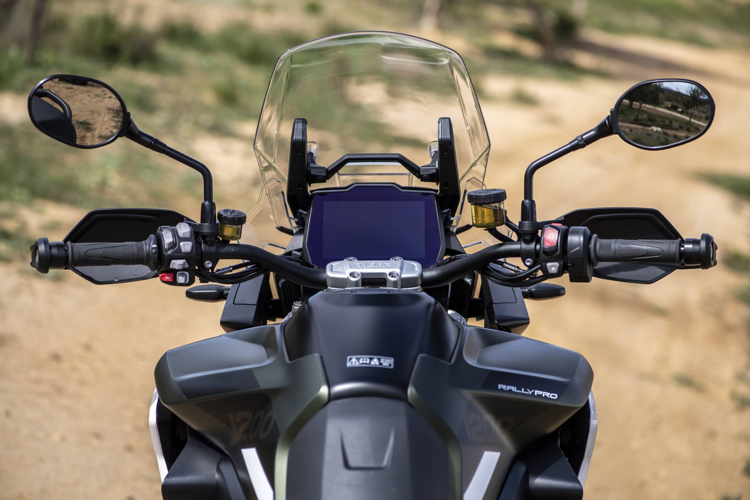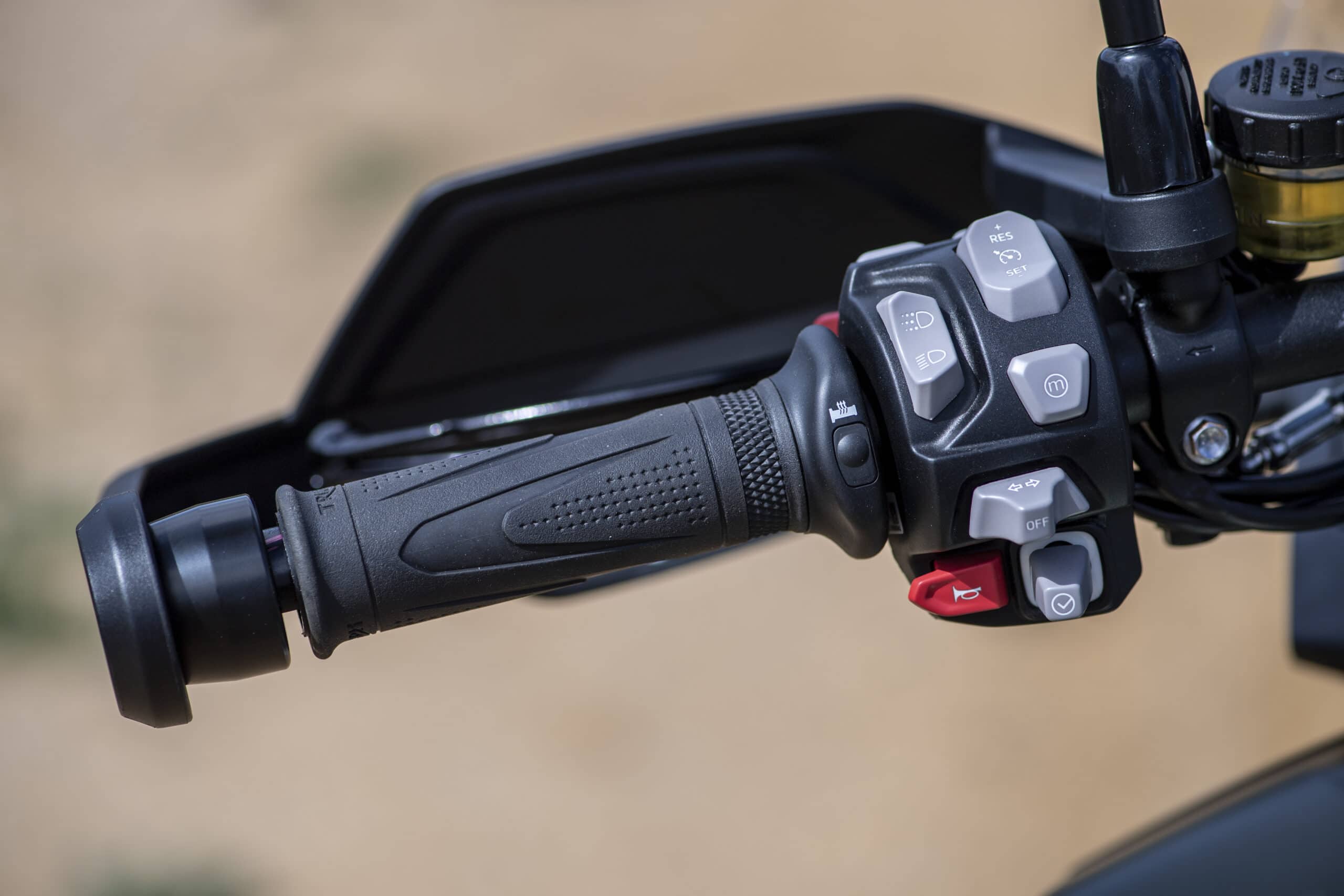 Nos 5 machines disposent en revanche d’une instrumentation TFT de 7 pouces intégrant une connexion Bluetooth, de modes de conduite paramétrables d’un contrôle de traction réglable et d’un ABS déconnectable fonctionnant tous deux sur l’angle. Les versions Pro se distinguent par l’ajout d’éléments chauffants (selle et poignées), d’un shifter bi-directionnel et de modes moteurs supplémentaires (Offroad et Offroad Pro)