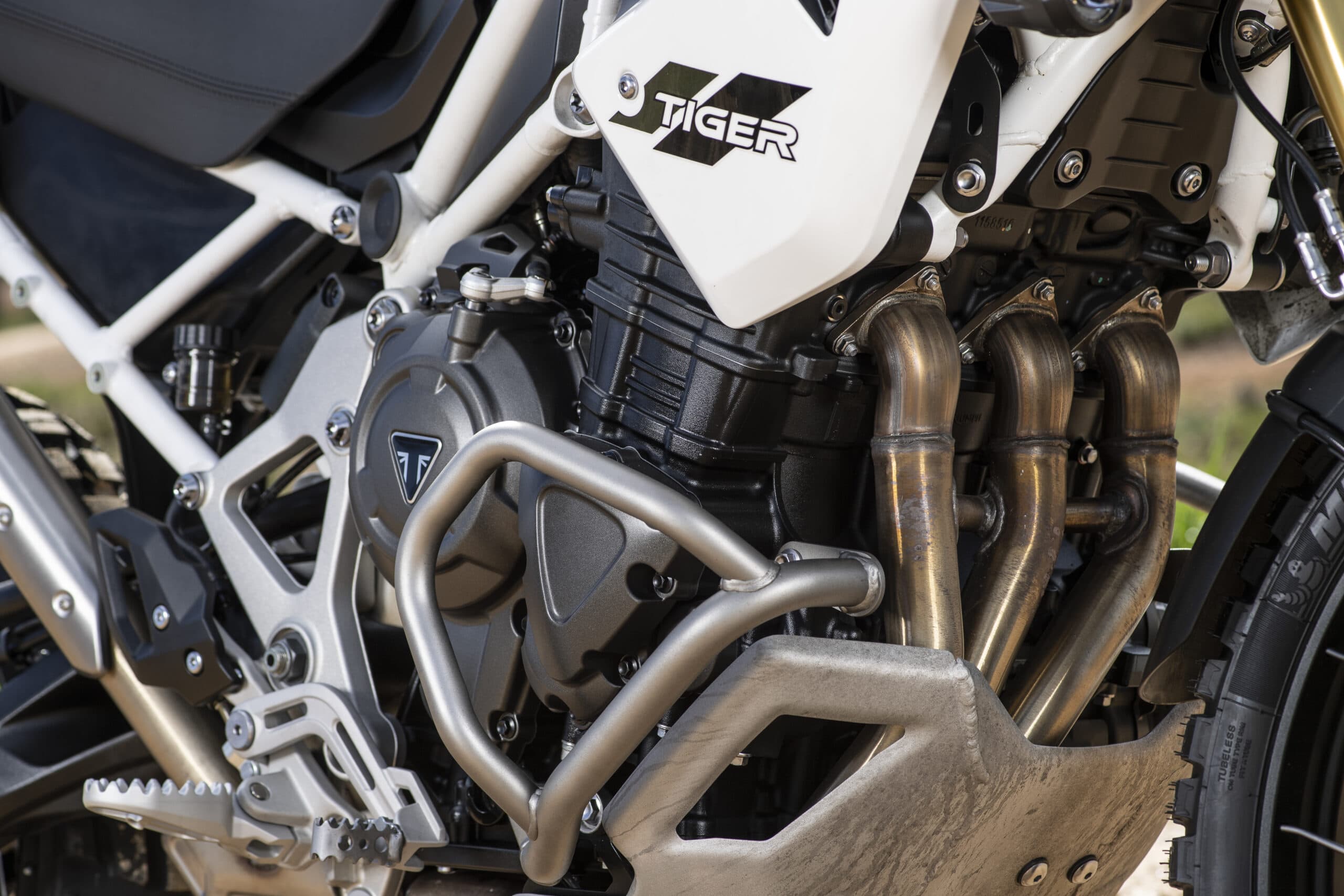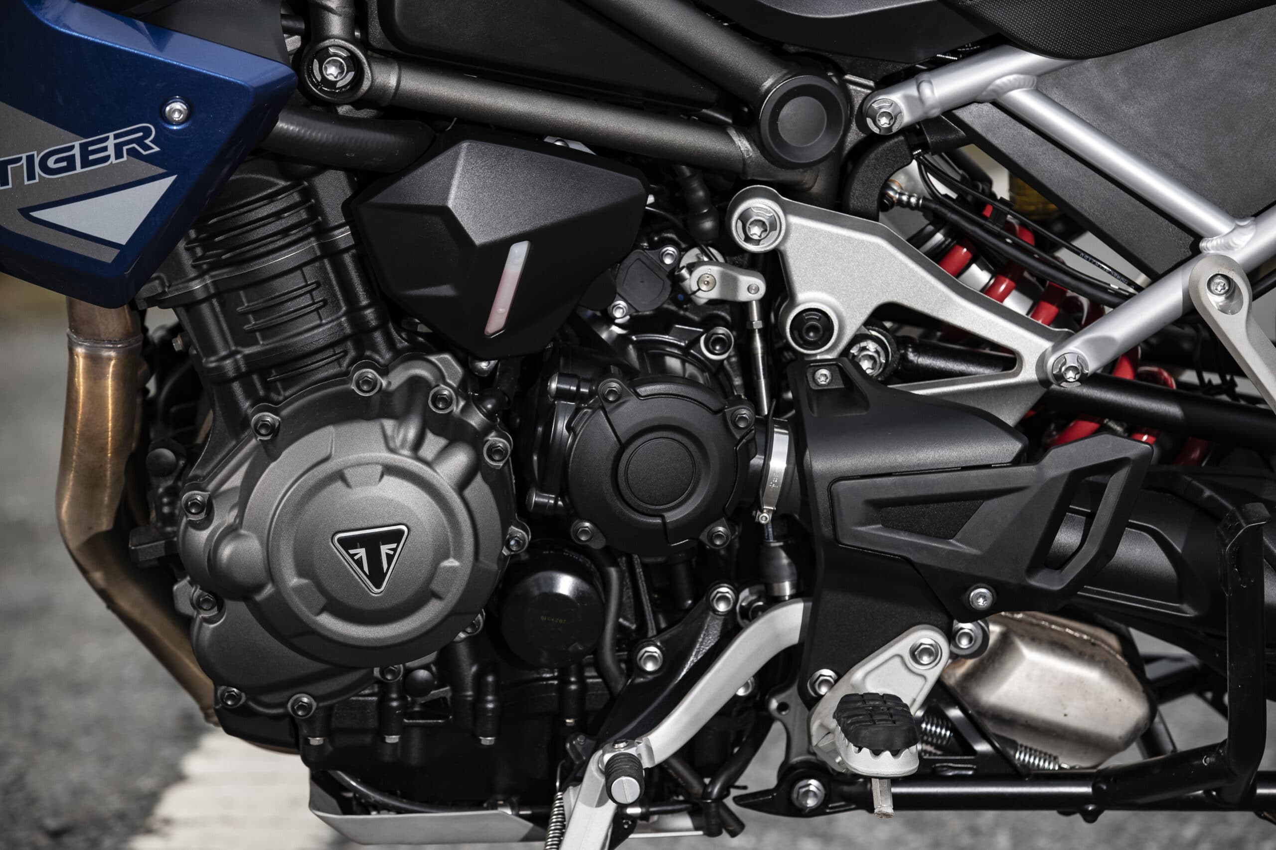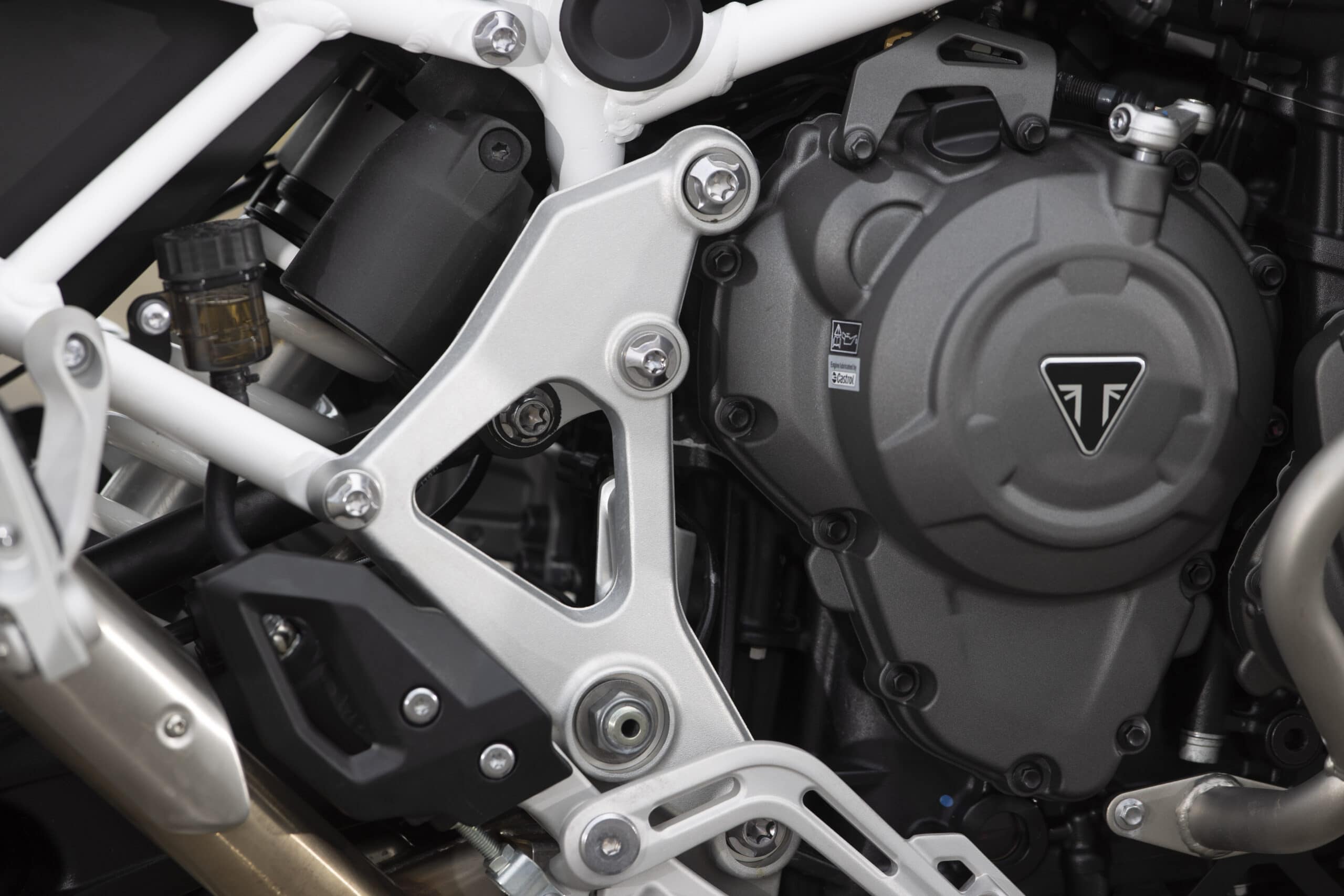 En fonction du mode sélectionné, le trois cylindres se montre onctueux à bas régime… ou bestial dans les tours. Il est notamment capable de reprendre en 6e sous les 2500 tours sans jamais produire de désagréables vibrations et s’autorise de longs rugissements de 6000 à 11 000 tr/min. Secondé par une boite bien étagée (équipée d’un shifter bidirectionnel performant) le moteur de la Tiger sait aussi se faire oublier, tout comme sa transmission par cardan, discrète et sans à-coups sur nos différents modèles d’essai.