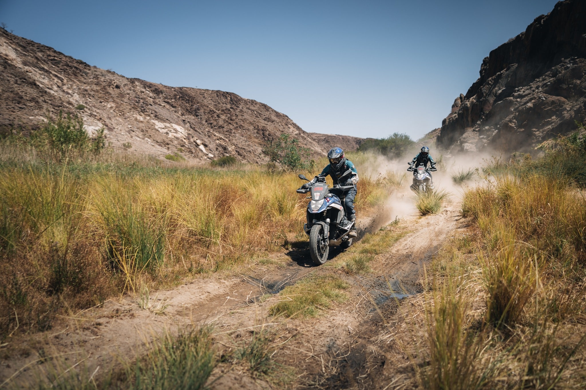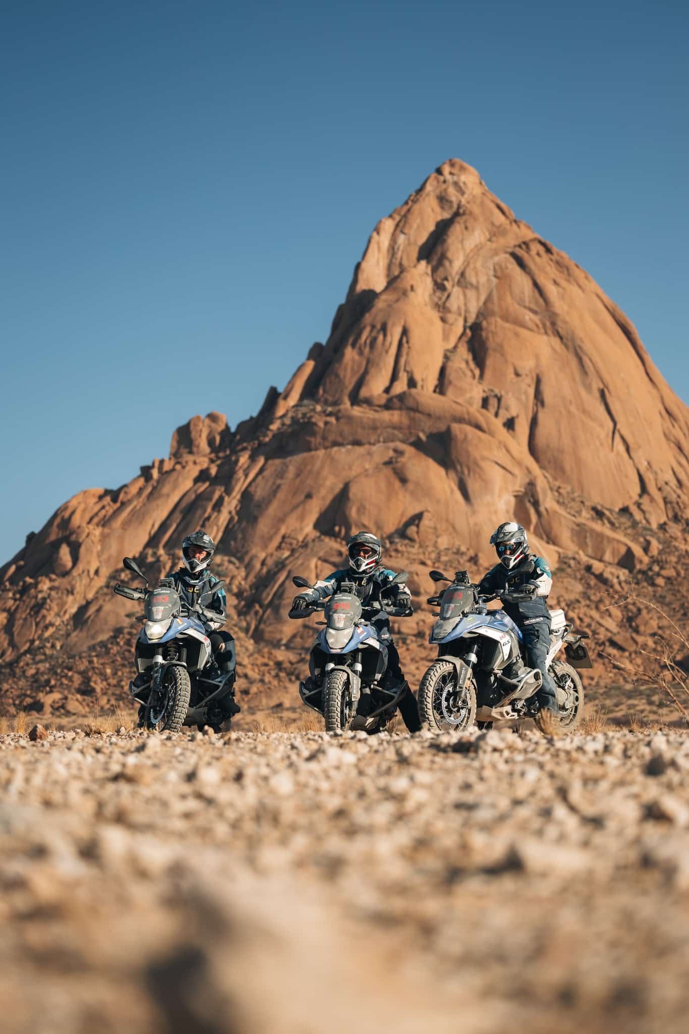 Cette image captivante résumait parfaitement la scène qui accueillit les pilotes au matin du 3ème jour du BMW Motorrad International GS Trophy en Namibie. Baignés dans la douce lumière de l’aube, les rochers se dressaient tels des sculptures gréco-romaines antiques — chefs-d’œuvre de la nature, avec des couches de pierre drapées les unes sur les autres comme une couverture. C’était un festin visuel pour les pilotes, un bref moment de calme et d’admiration avant de se lancer dans la première épreuve spéciale de la journée, située juste à côté du campement.