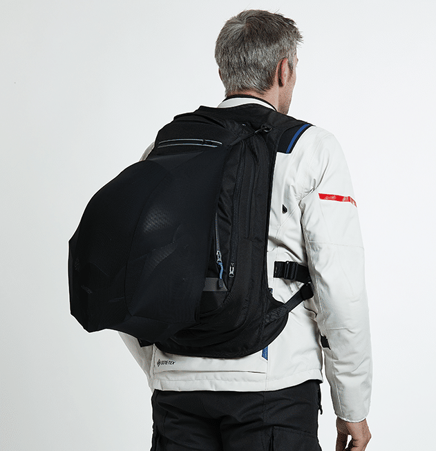 Conçu pour être porté par-dessus le blouson moto, il assure une compatibilité totale avec l’équipement du motard. De plus, il offre toute la commodité d’un sac à dos traditionnel, avec de multiples compartiments de rangement, permettant aux utilisateurs de transporter facilement leurs affaires quotidiennes.