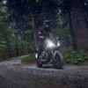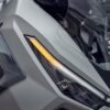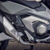 Esthétiquement, cet hybride entre scooter et trail est toujours aussi surprenant… et clivant. Le chamgement principal réside dans l’apparition d’une double optique avant à LED, combinée à des feux de jour et des clignotants intégrés. Cette mise à jour esthétique s’accompagne également d’une mise à jour de sa transmission DCT (double embrayage), visant à offrir une conduite plus fluide à basse vitesse.
