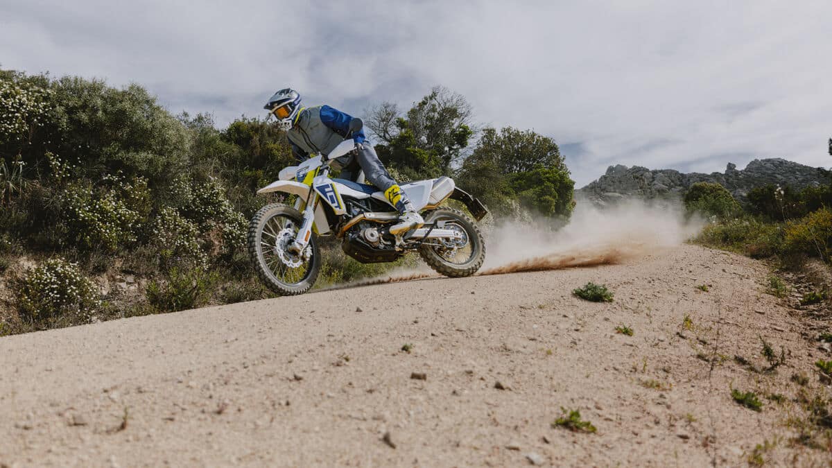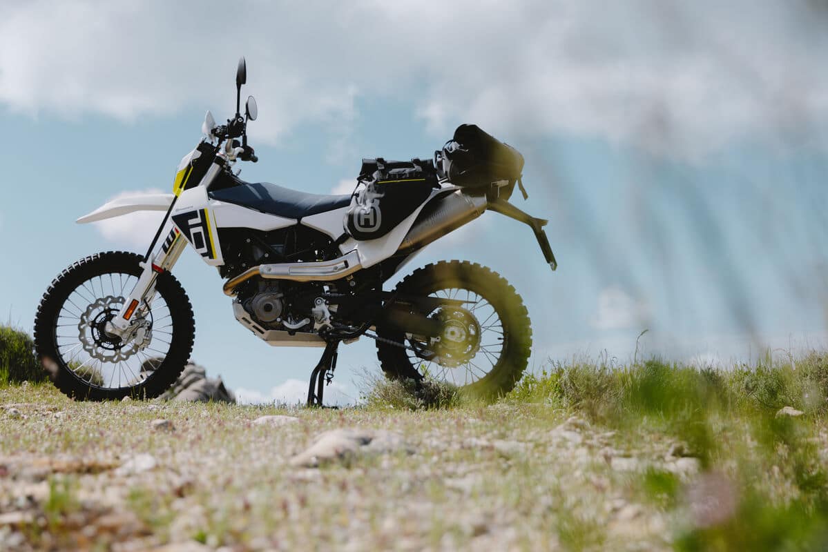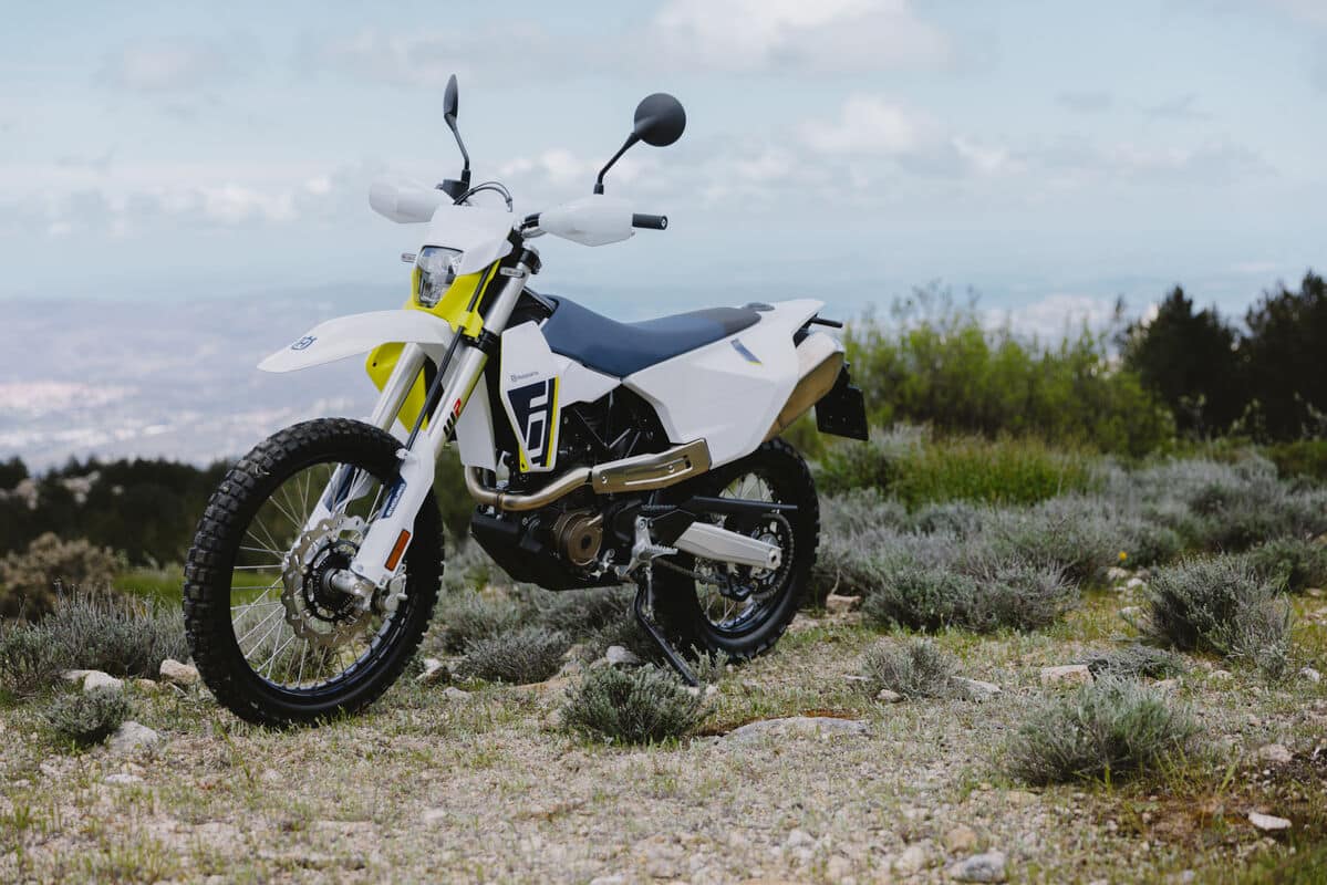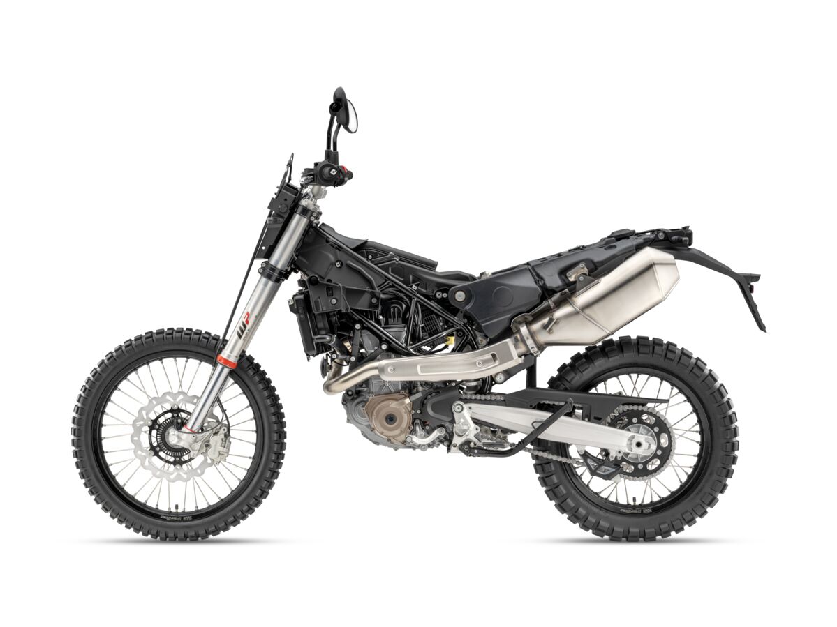 La partie-cycle conserve les bases éprouvées : cadre treillis acier chrome-molybdène, bras oscillant aluminium et sous-cadre en polyamide intégrant le réservoir de 13,3 litres. Les suspensions WP bénéficient de réglages mis à jour, et de nouveaux points de fixation permettent désormais d’ajouter une béquille centrale en option. Côté style, la 701 Enduro dispose de nouveaux carénages au design modernisé, mais toujours habillée d’une livrée blanc/bleu d’inspiration suédoise.