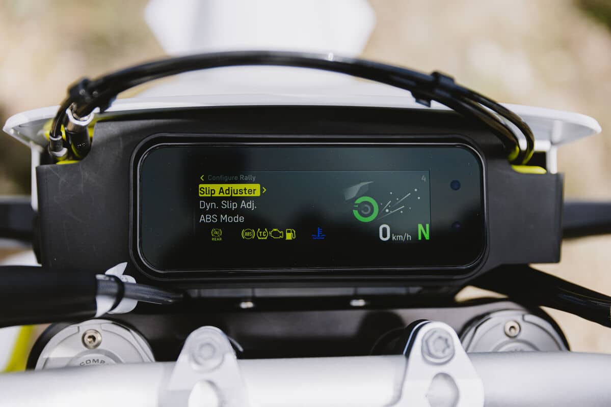 En option, un mode Rally débloque de nouvelles fonctionnalités, dont le Dynamic Slip Adjust. Ce système ajuste automatiquement la tolérance de glisse de la roue arrière en fonction de l’adhérence, permettant plus de motricité dans les montées ou sur terrain glissant sans couper la puissance.