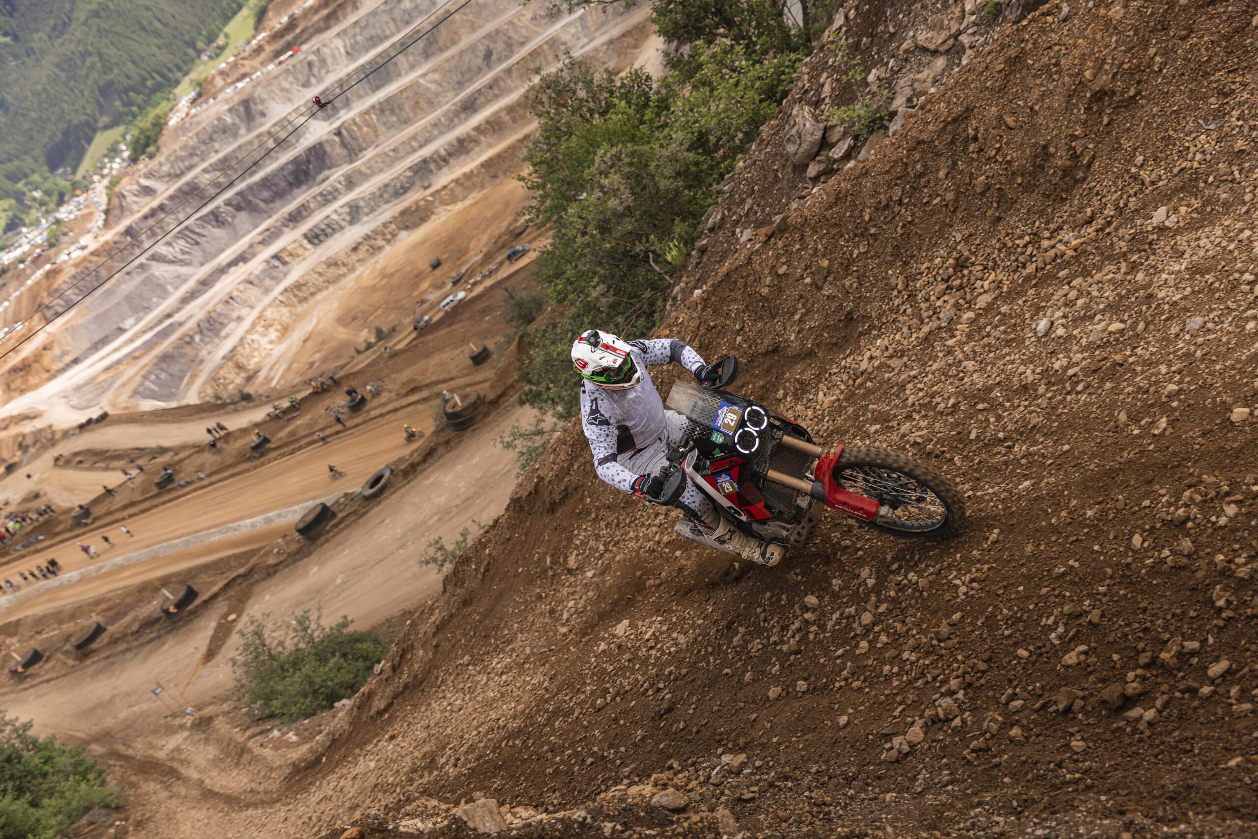 La DesertX pilotée par Antoine Méo (multiple Champion du Monde d’enduro et Champion d’Europe de Supercross) a en effet remporté la victoire au Prolog Iron Road d’Erzberg. Méo, qui développe le projet DesertX dès le début, a également participé à la course Mitas Rocket Ride, terminant quatrième au classement général et premier dans la catégorie des bicylindres.