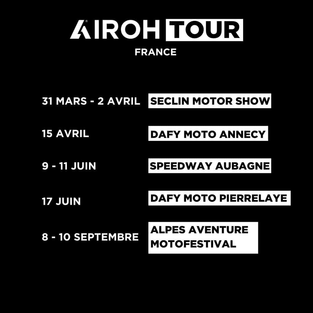 Après l’annonce des AIROH DAYS italiens, le célèbre fabricant de casque prévoit une tournée à la rencontre de sa clientèle française. L’occasion pour la marque de dévoiler une partie de sa collection 2023 à son public de l’hexagone.