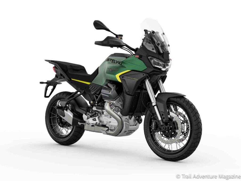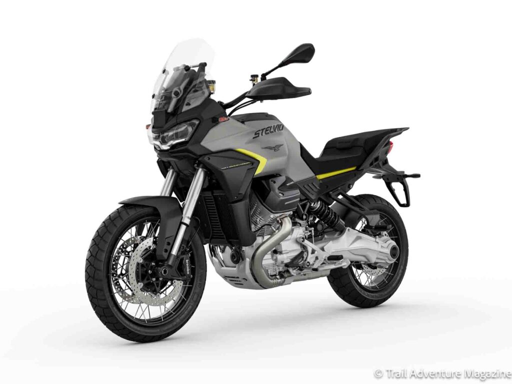 Pour 2026, la Stelvio adopte deux nouvelles teintes baptisées Gris Climbing et Vert Hiking, dans la continuité de son positionnement orienté voyage et exploration. Ces coloris viennent renforcer l’identité visuelle du modèle, en cohérence avec son orientation trail routier.
