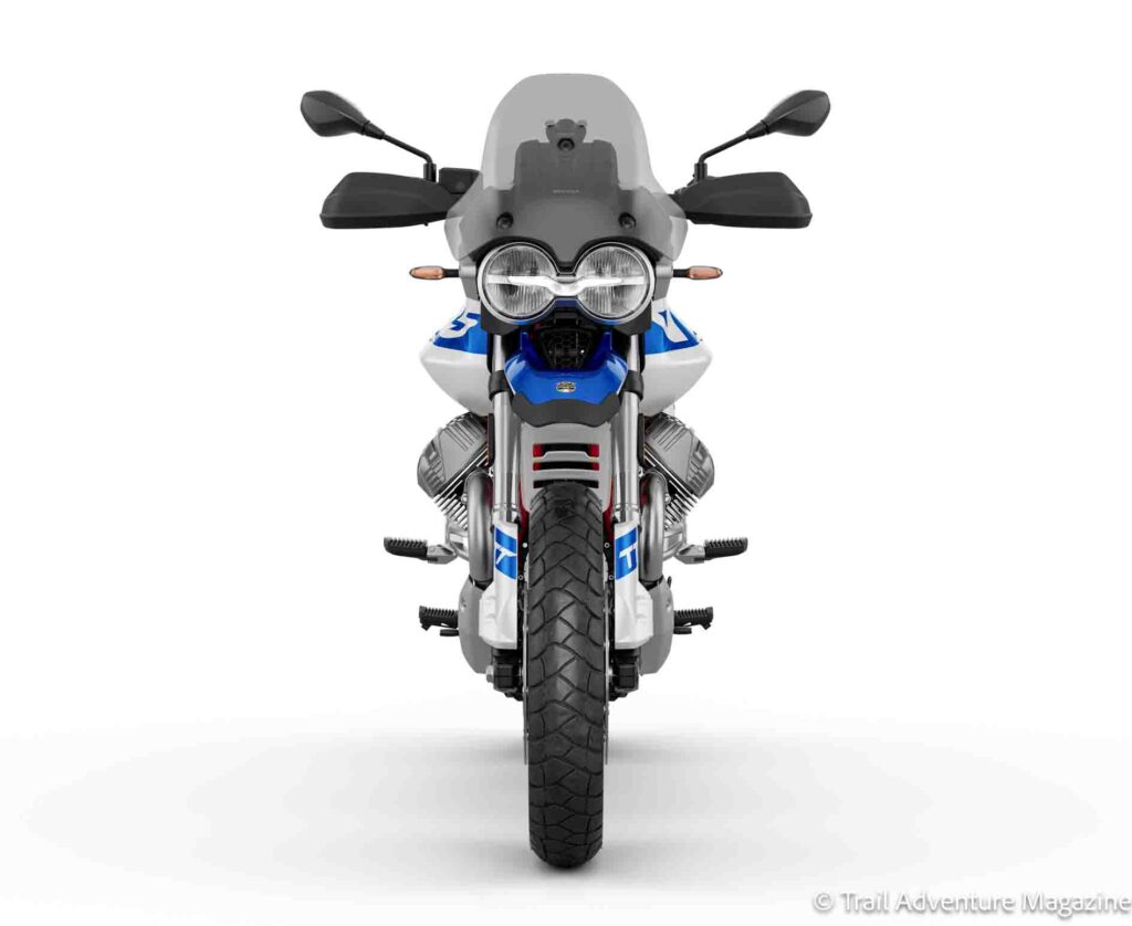 - La Moto Guzzi V85 TT Travel, version orientée voyage, adopte une livrée inédite Bleu Zefiro.