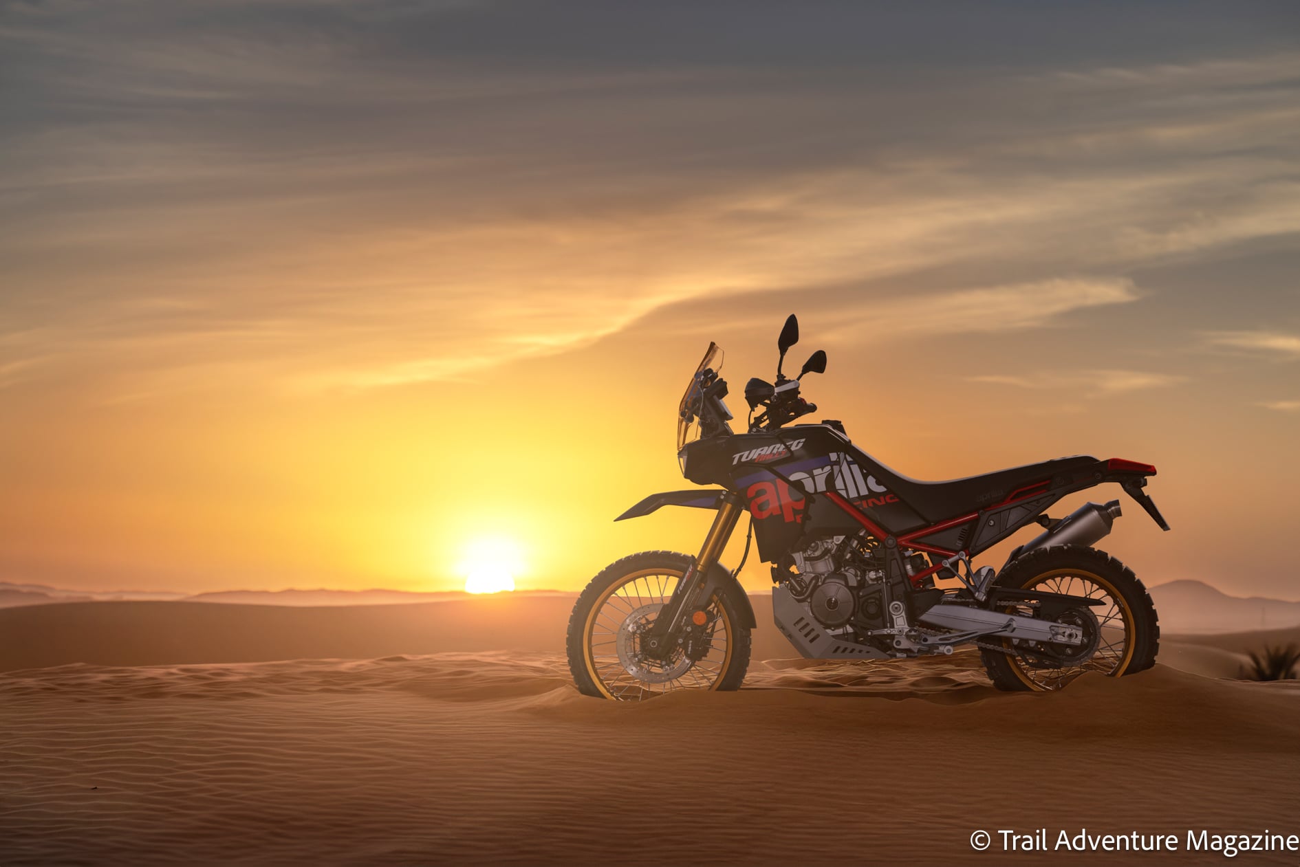 Pas peu fière d’avoir remporté l’Africa Eco Race et le championnat de Rally italien à deux reprises avec sa Tuareg 660, Aprilia célèbre ses victoires avec cette nouvelle version Rally.