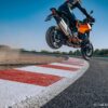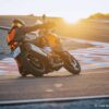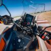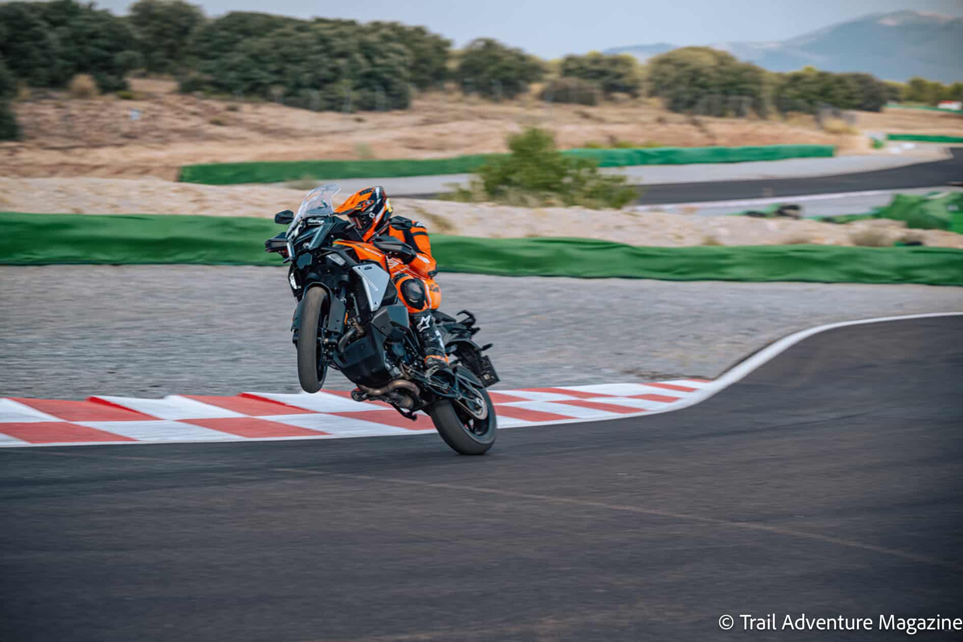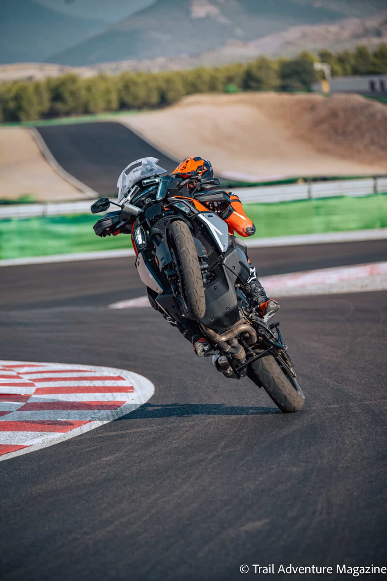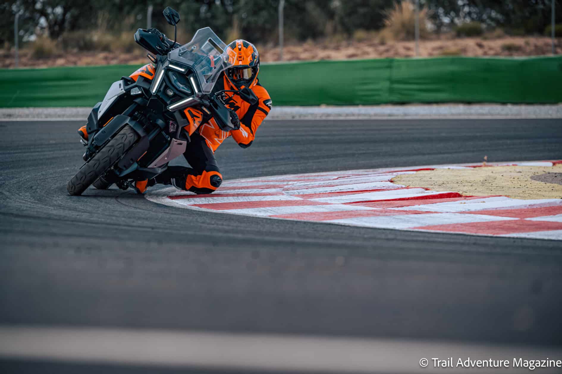 La KTM 1390 SUPER ADVENTURE S EVO est également équipée d’un nouvel écran tactile V80 TFT placé en mode « portrait ». Cet écran tactile de 8 pouces utilise une technologie inductive, permettant une utilisation même avec de épais gants d’hiver, tandis qu’un revêtement innovant anti-reflet, anti-traces de doigts et anti-éblouissement améliore la lisibilité globale. Le nouveau système de régulateur de vitesse adaptatif (ACC) intègre, quant à lui, une assistance au freinage et un avertisseur de collision.