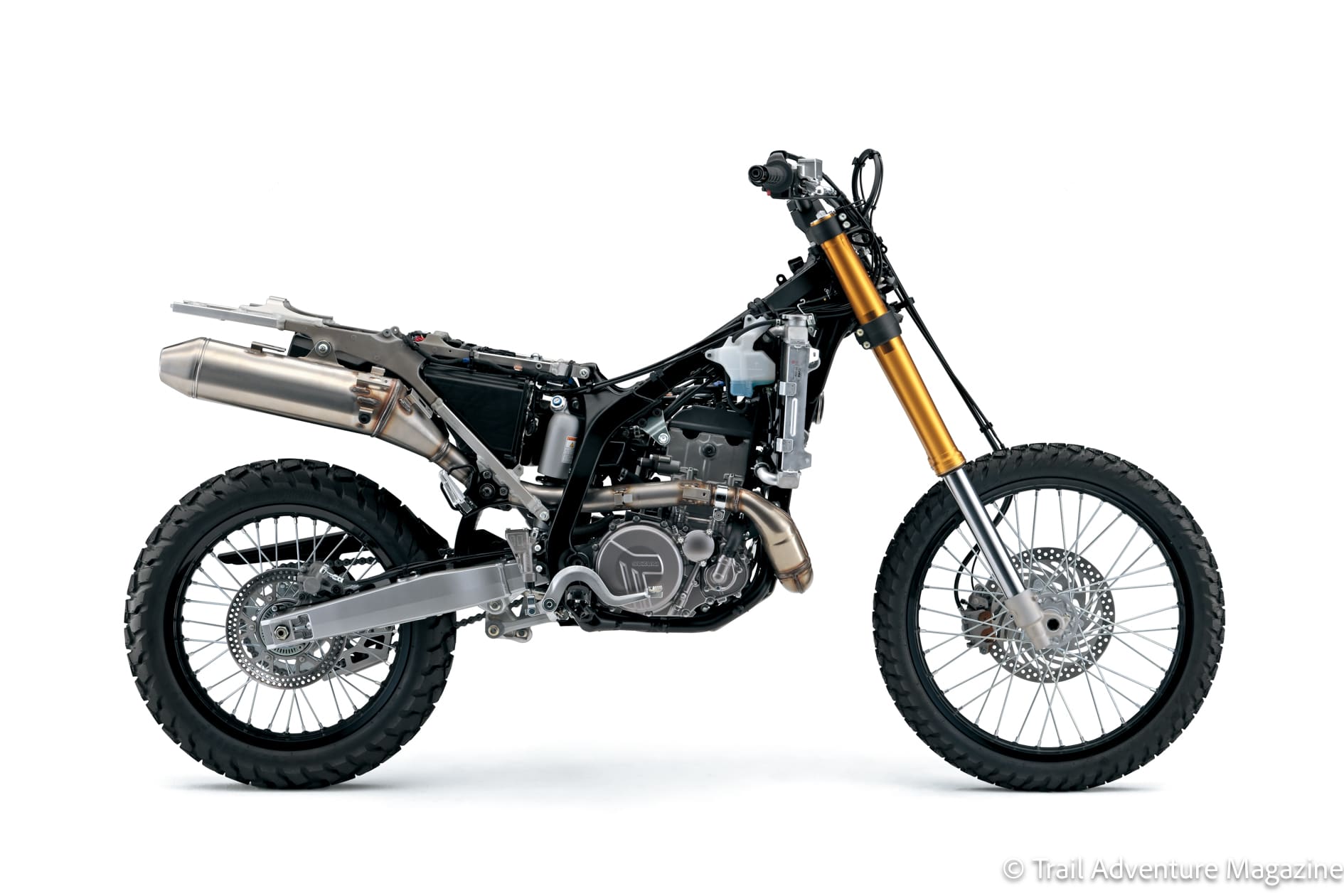 Quant au monocylindre 4-temps, 2 ACT à refroidissement liquide de 398 cm³ et boîte 5 vitesses, il a également été entièrement revu pour répondre à la norme Euro5+. Sa puissance est cependant inférieure à celle de l’ancien modèle : 38 chevaux à 8 000 tr/min et 3,77 mkg à 5 600 tr/min, soit tout de même 2 chevaux de moins qu’auparavant ! Des chiffres sans doute suffisants pour animer les 154 kg de ce trail, a priori bien suspendu.