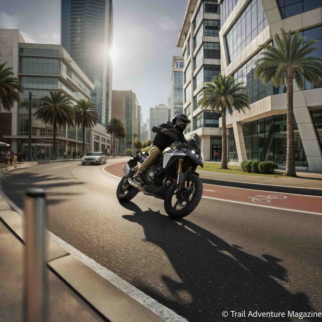 Côté interface, la F 450 GS hérite d’un grand écran TFT couleur de 6,5 pouces, identique à celui des modèles supérieurs. Parfaitement lisible, il affiche les informations de conduite, les modes actifs et la connectivité Bluetooth. Une fois le smartphone connecté, on peut écouter de la musique, naviguer ou gérer les appels via la commande au guidon.
