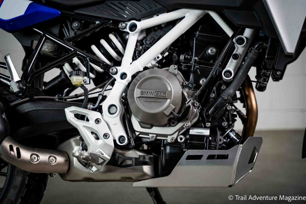 Sous son look affûté, la F 450 GS cache un tout nouveau bicylindre parallèle de 420 cm³, développant 48 ch à 8 750 tr/min pour 43 Nm de couple à 6 750 tr/min. Un moteur au calage à 135°, censé offrir une sonorité et un tempérament plus marqués que la moyenne des bicylindres de petite cylindrée. BMW promet un comportement vivant et des vibrations bien contenues grâce à un arbre d’équilibrage unique en son genre. La moto annonce un poids tous pleins faits de 178 kg, sans ses 14 litres d’essence, ce qui la place entre ses rivales directes, notamment la KTM 390 Adventure (163 kg à sec) et la toute nouvelle CFMOTO 450 MT (175 kg à sec).