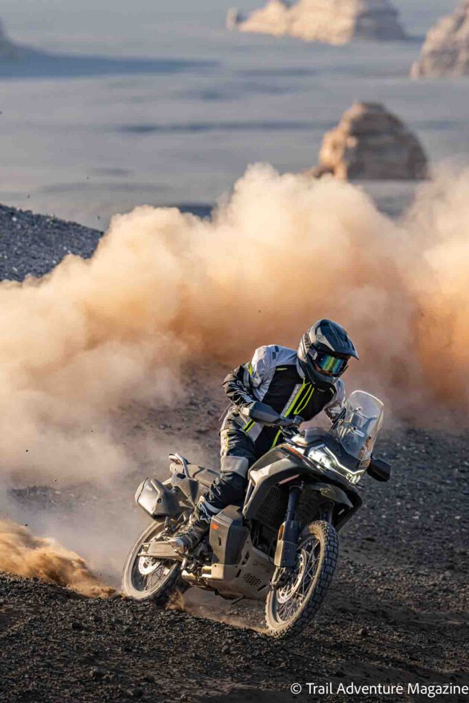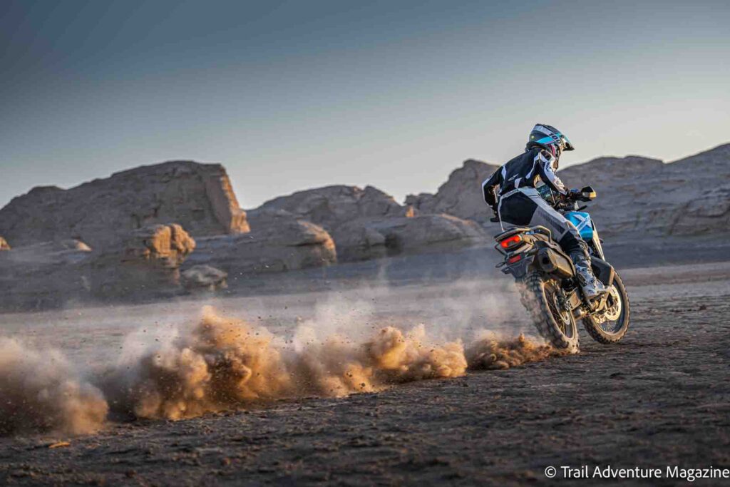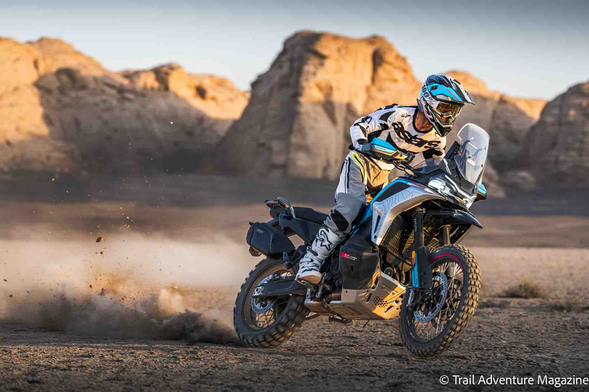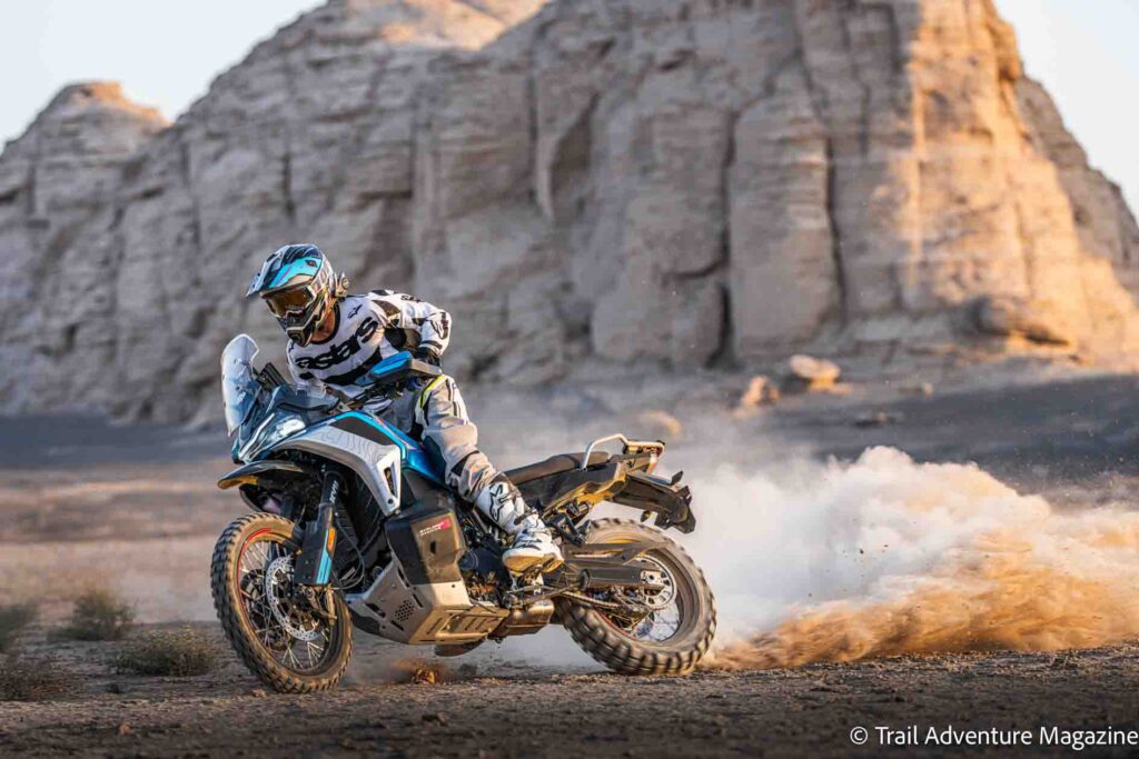 Si CFMOTO à décider de conserver un look très proche de la 800 MT-X (et on peut le regretter), ce nouveau trail affiche des caractéristiques interessantes: moteur bicylindre en ligne de 946 cm³ développant 113 ch à 8 500 tr/min, un couple de 10,7 mkg à 6 250 tr/min et un poids contenu à 222 kg tous pleins faits. La 1000MT-X reçoit une fourche inversée KYB de 48 mm entièrement réglable, offrant 230 mm de débattement, tout comme le mono-amortisseur arrière, lui aussi signé KYB.Le freinage est confié à Brembo, avec des étriers radiaux à quatre pistons et disques de 320 mm à l’avant, tandis qu’un étrier double piston et un disque de 260 mm assurent le service à l’arrière. Les jantes à rayons tubeless accueillent des pneus Pirelli STR en 21 pouces à l’avant et 18 pouces à l’arrière. De quoi confirmer le positionnement “off-road sérieux” de cette machine, dont le réservoir de 22,5 litres promet de longues étapes entre deux pleins. CFMOTO soigne également la dotation, avec des phares et feux full LED, un écran TFT couleur de 8 pouces avec connectivité, un pare-brise réglable, des protège-mains, un ABS en virage et contrôle de traction Bosch.