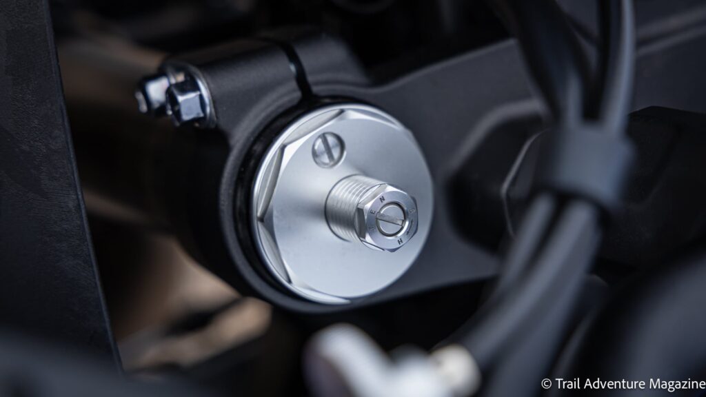 La nouvelle Ténéré reçoit également des modifications d’ordre pratique : son réservoir de 16 litres a été avancé et abaissé, contribuant ainsi à une répartition plus équilibrée et à une meilleure maniabilité. La selle a été redessinée sous la forme d’un monobloc plus étroit, offrant une plus grande liberté de mouvement. Les repose-pieds élargis sont issus du modèle World Raid, et côté solidité, Yamaha a enfin renforcé le support de silencieux, les points de fixation du porte-bagages et le contacteur de béquille latérale, qui a même été déplacé, suite aux retours des clients. Côté électronique, l’ABS et le nouveau contrôle de traction sont entièrement et rapidement déconnectables via un bouton sur le tableau de bord.