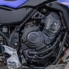 Le fameux bicylindre parallèle CP2 de 689 cm³ n’évolue malheureusement pas en matière et de puissance (73,4 ch). Il bénéficie en revanche de deux nouveaux modes moteur aux caractéristiques différentes : Sport et Explorer, ce dernier délivrant la puissance de façon plus mesurée. Le conduit d’admission d’air a également été modifié ; il est désormais plus court et contribue à une courbe de couple plus généreuse en bas de la plage d’utilisation, malgré le passage aux normes d’émissions EU5+. Les éléments internes de la boîte de vitesses ont aussi été revisité pour offrir des passages de rapports plus fluides. Enfin la position de la came d’embrayage a été avancée et un cache de protection lisse et minimaliste a été ajouté pour ne plus gêner la jambe du pilote !