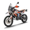 KTM ne propose pour l’instant plus de modèle standard, l’offre 890 Adventure reposant sur les versions R et R Rally. Cette dernière, plus luxueuse encore, et limitée à 700 exemplaires dans les monde (dont 200 rien que les USA) se distingue par sa selle haute monobloc (910 mm), son silencieux Akrapovic, ses protections en carbone et bien sûr, ses suspensions haut de gamme WP XPLOR.