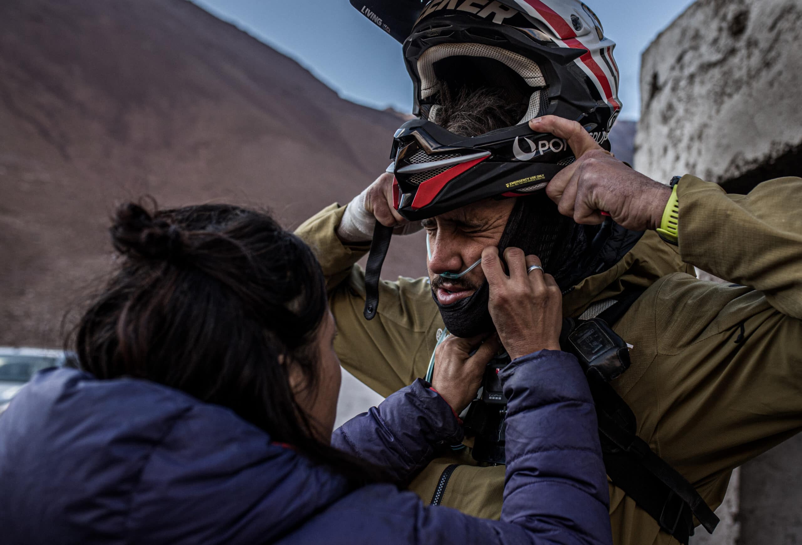 « L’objectif principal de notre expédition était de tester la moto et le pilote dans les conditions les plus difficiles possibles. Le 12 mars, j’ai décollé du camp de base à 3000 m d’altitude, j’ai fait 10 km et j’ai dormi au camp intermédiaire à 4500. Le 14, j’ai touché le point le plus haut jamais atteint sur une moto bicylindre, 6157,5 mètres. Quand j’ai enfin obtenu une connexion radio, j’ai dit à mon équipe que je ne pourrai pas continuer. Je pouvais voir qu’ils arrêtaient de respirer. Ils ne m’avaient jamais entendu dire que je ne pouvais pas. Le monstre rocheux a littéralement mangé mon pneu et c’était fini, mais pour le reste, après de nombreuses sections noueuses que j’ai franchies jusqu’à ce point, je savais que je pouvais aller jusqu’au sommet. Sommet ou pas, on a fait quelque chose de gigantesque ! »