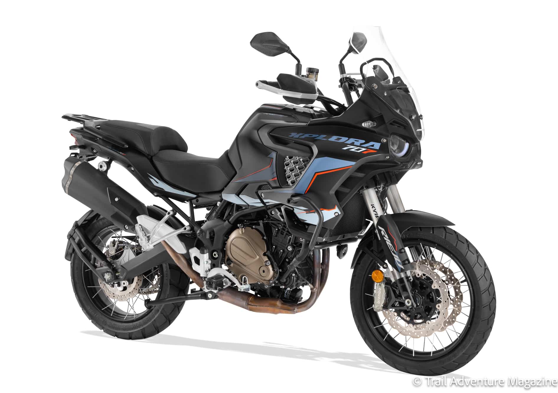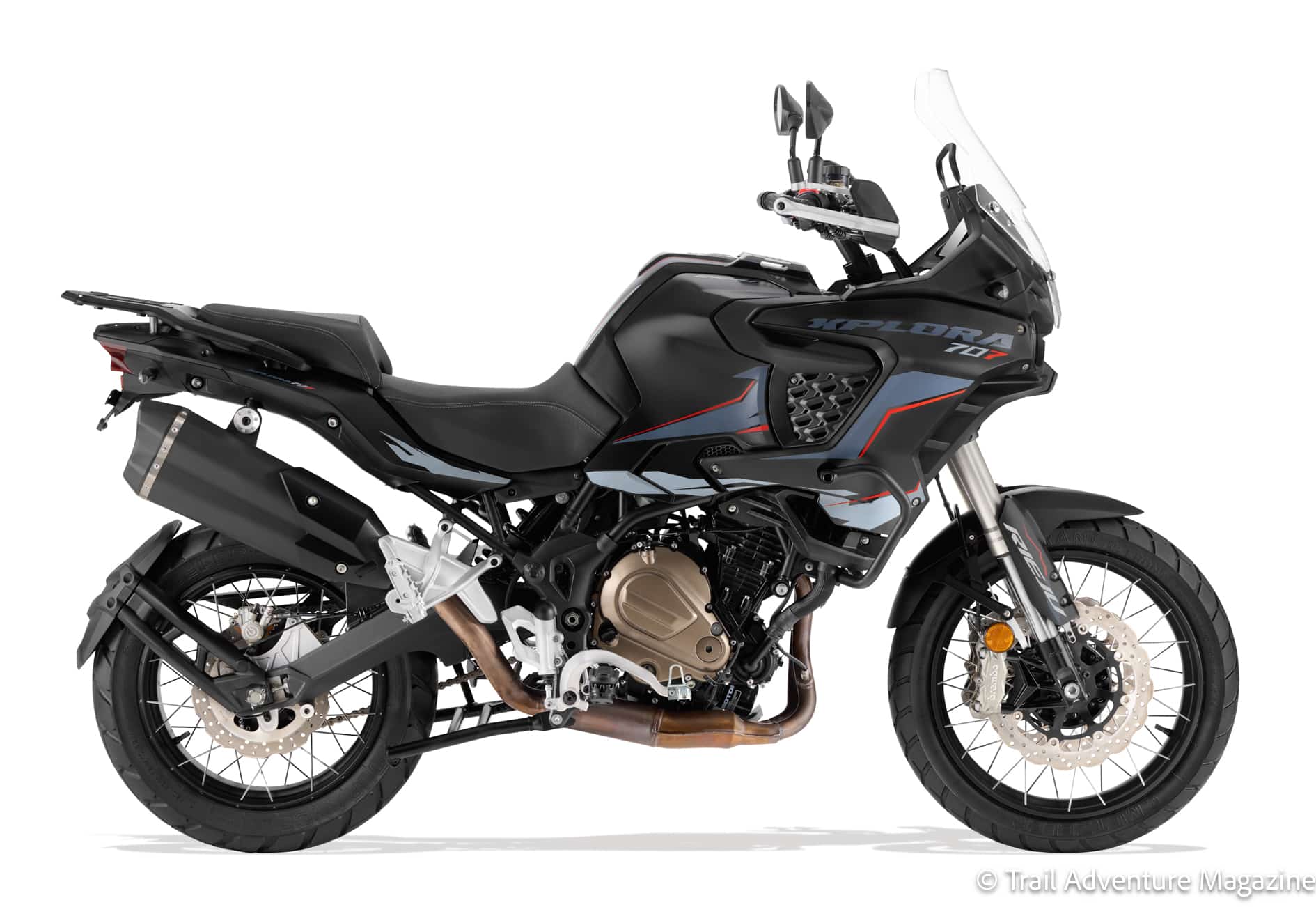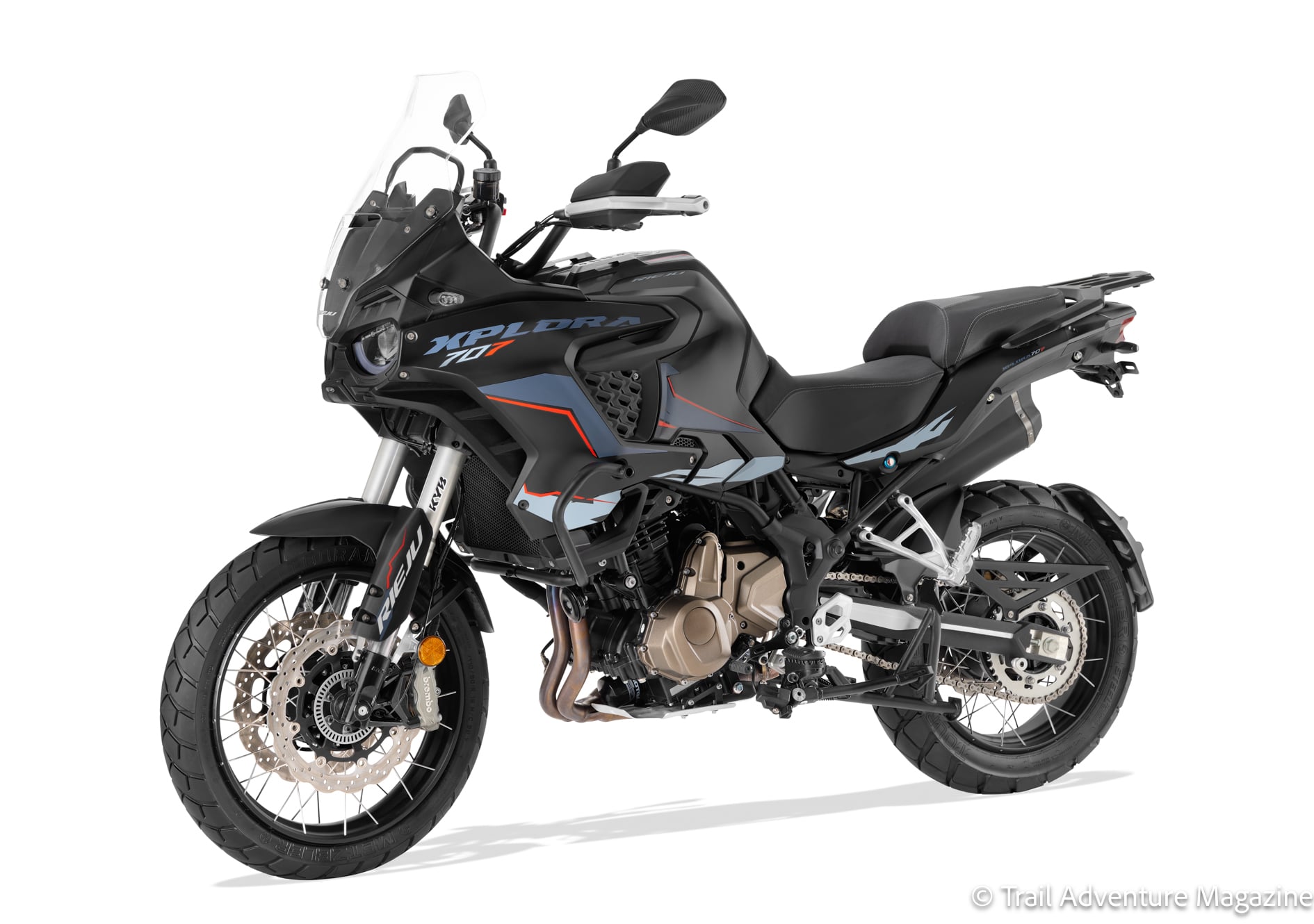 Avec un poids à sec de 221 kg et une hauteur de selle de 835 mm, la Xplora 707 se situe dans la moyenne basse des trails mid-size. Le réservoir de 19,5 litres permet d’envisager de longues étapes sans ravitaillement. Son tarif est de 7 799 €