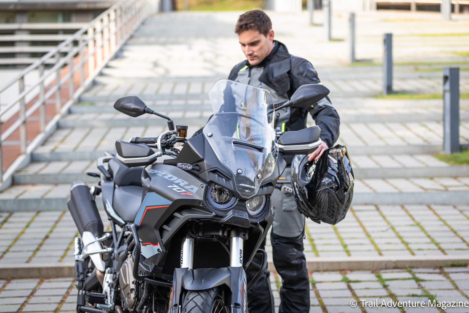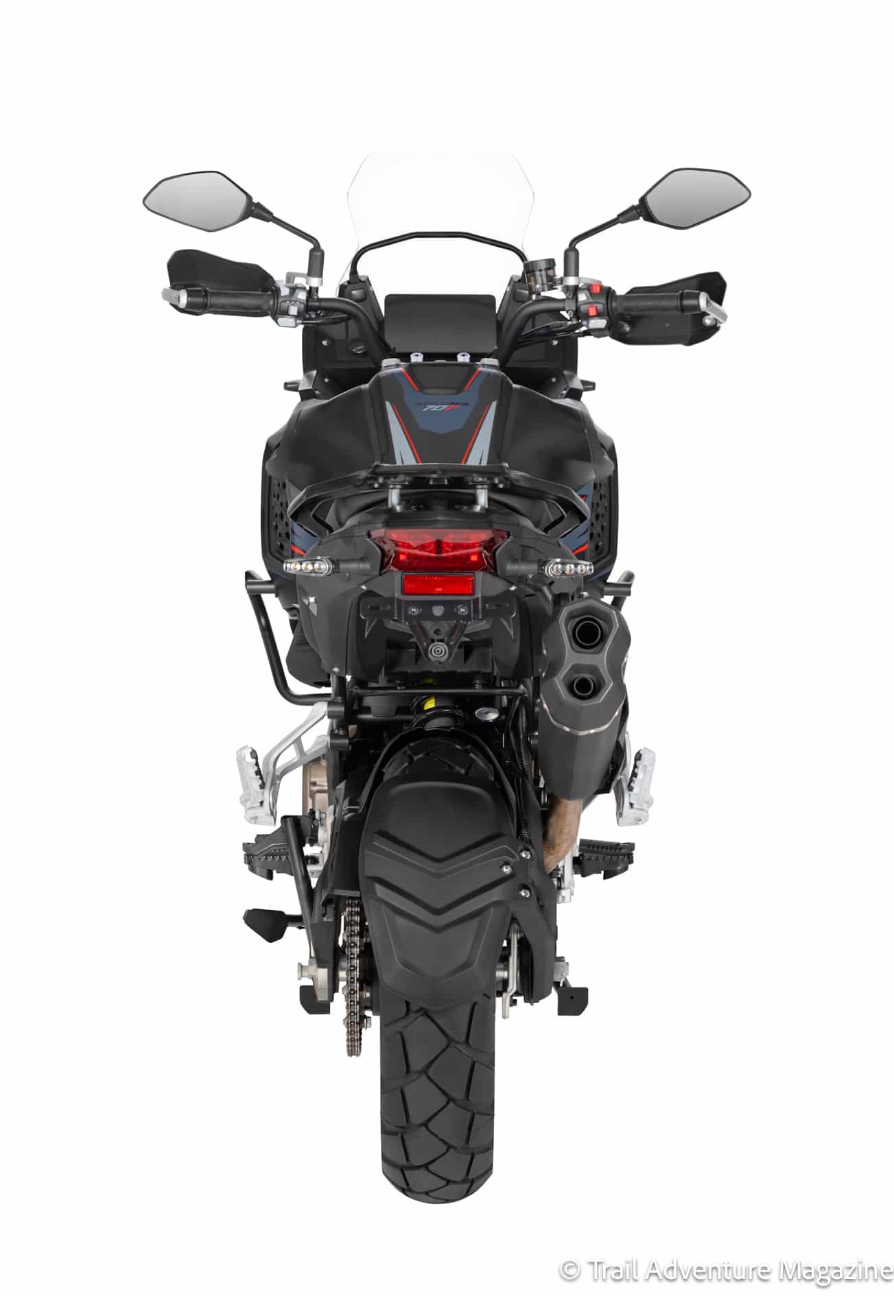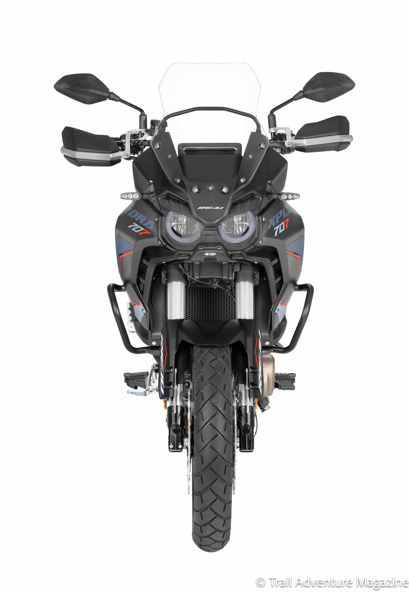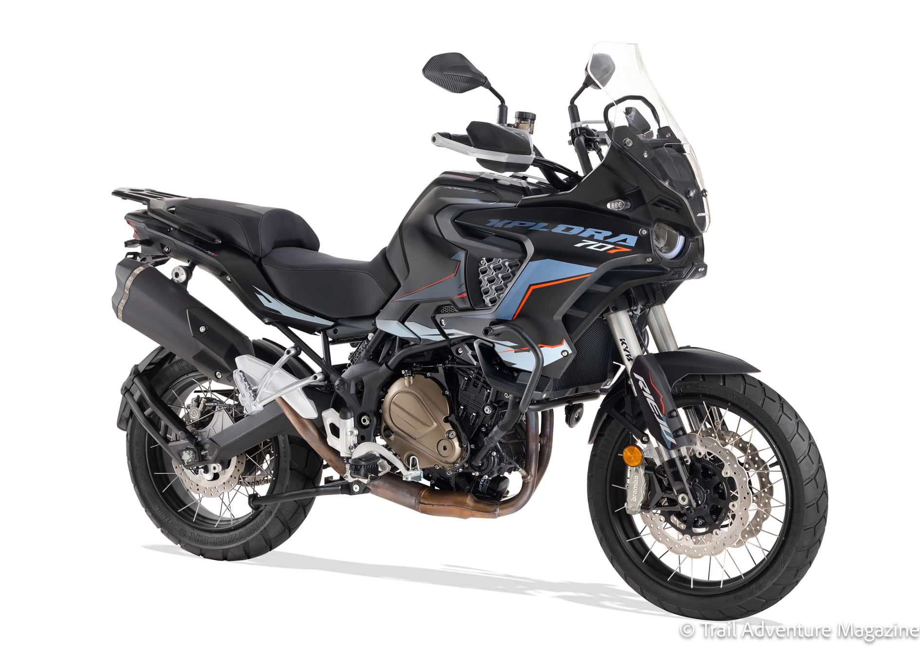 Avec un poids à sec de 221 kg et une hauteur de selle de 835 mm, la Xplora 707 se situe dans la moyenne basse des trails mid-size. Le réservoir de 19,5 litres permet d’envisager de longues étapes sans ravitaillement. Son tarif est de 7 799 €