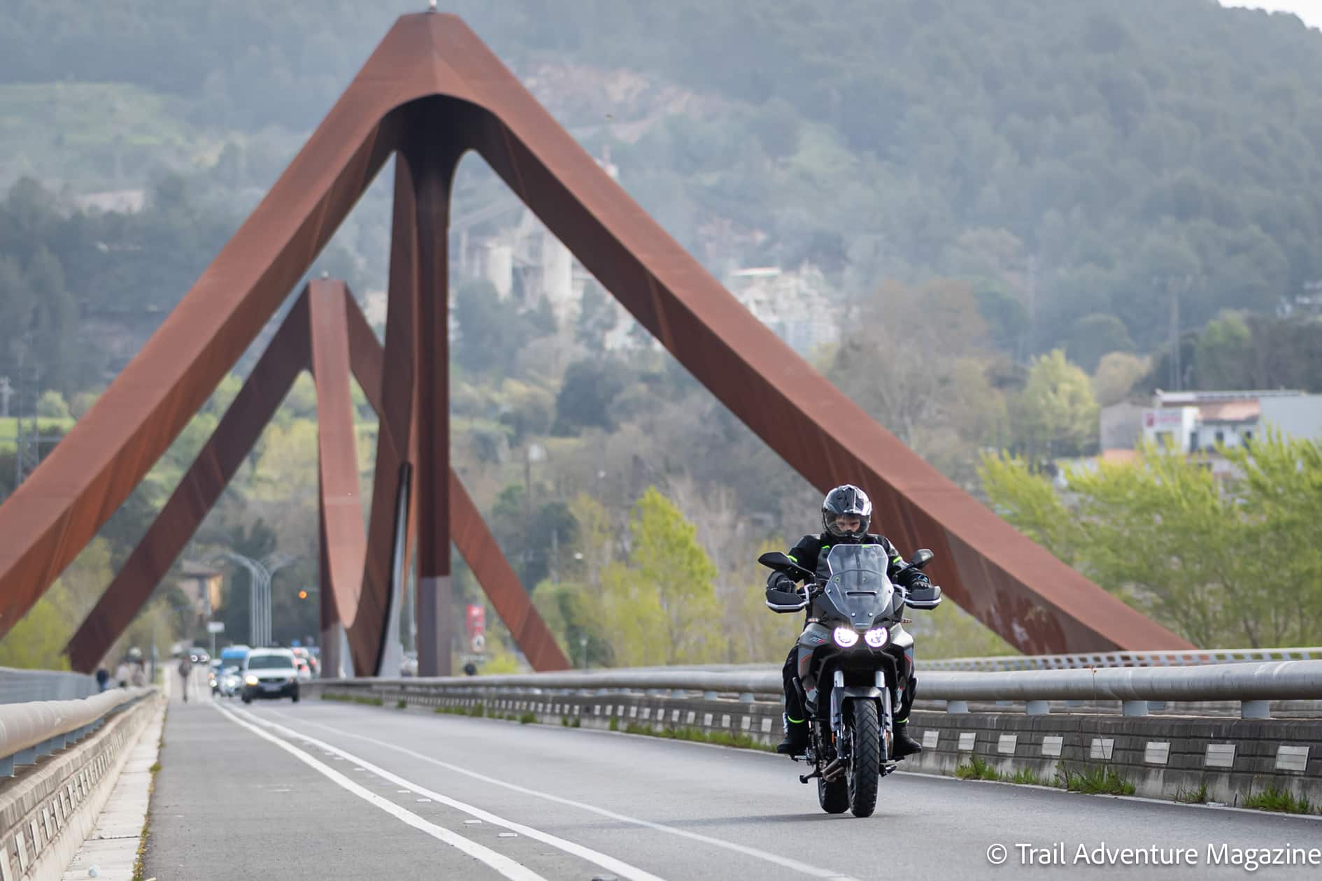 Les jantes aluminium en 19 pouces à l’avant et 17 pouces à l’arrière sont chaussées de pneus tubeless (110/80-R19 et 150/70-R17), orientés mixte. Le freinage est confié à Brembo, avec un double disque de 320 mm à l’avant (étriers 4 pistons à fixation radiale) et un disque de 260 mm à l’arrière. L’ensemble est couplé à un ABS Bosch double canal déconnectable.