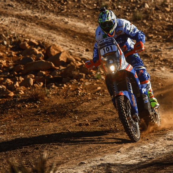 Jacopo Cerutti a mené l’Aprilia Tuareg sur la première marche du podium de l’Africa Eco Race 2023 catégorie +700 bicylindre,...